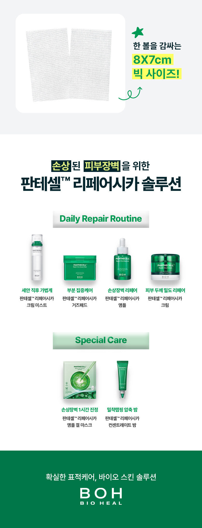 - Gently wipe along the skin’s texture with the gauze cotton. Conclude your routine with Pantecell™ Repair Cica Cream and ampoule for optimal results. For sensitive skin, let the product absorb naturally without wiping.