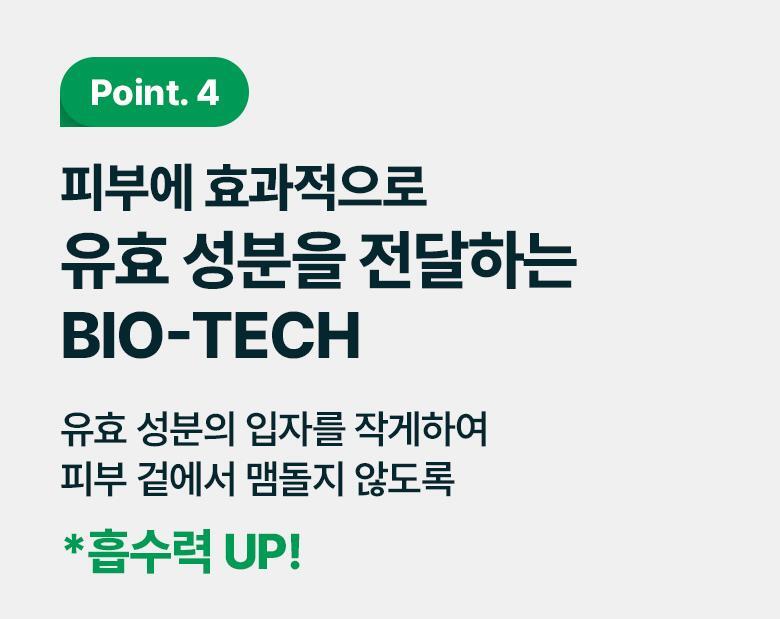 - BIO-TECH and BIO LOIOSOME TECH: These patented technologies (Patent No. 10-2283338) ensure deep skin penetration of active ingredients. The small particle size enhances absorption and effectiveness.