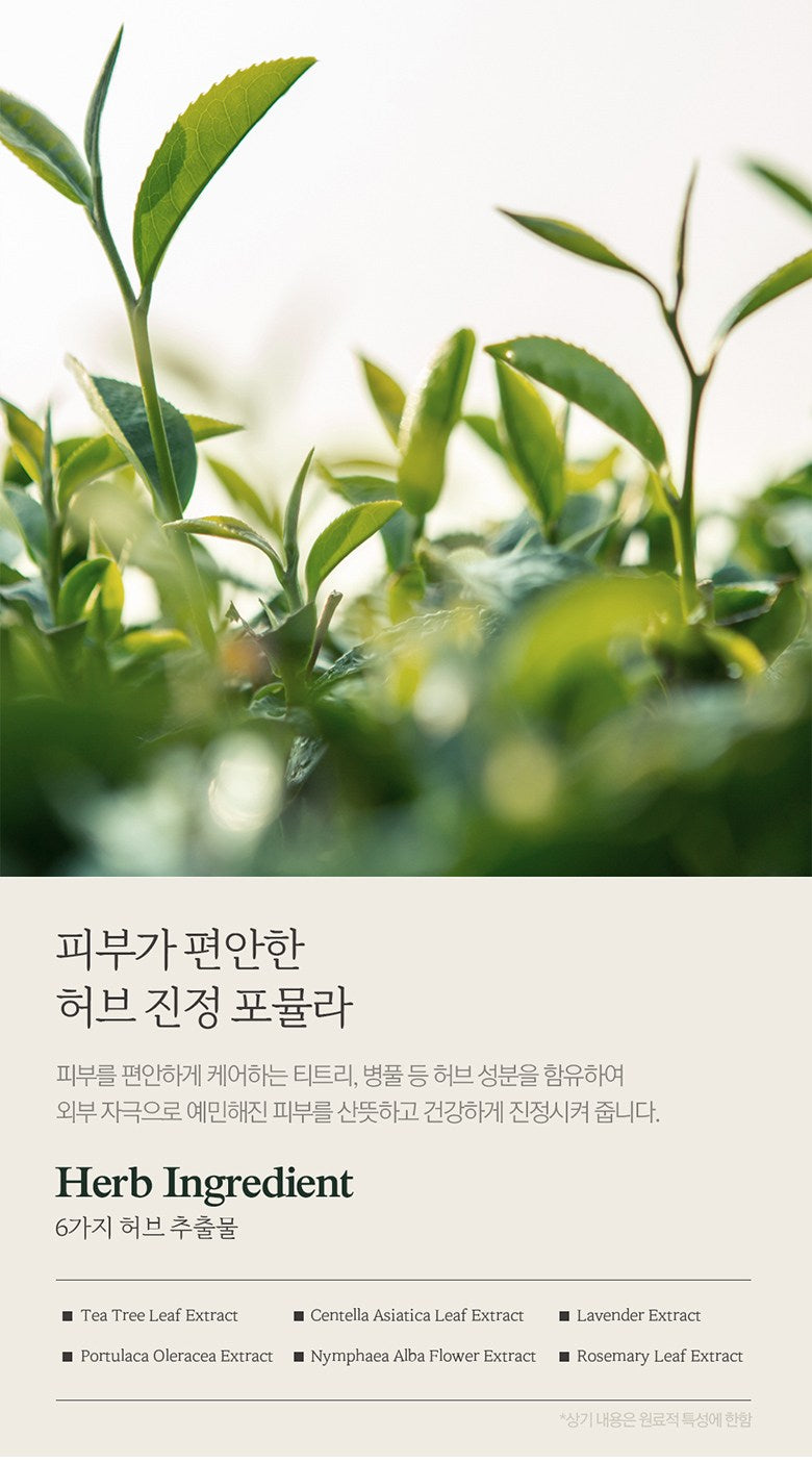 Our soothing formula contains a blend of herbs such as tea tree and centella asiatica, offering calm and refreshment to sensitive skin affected by external stimuli.