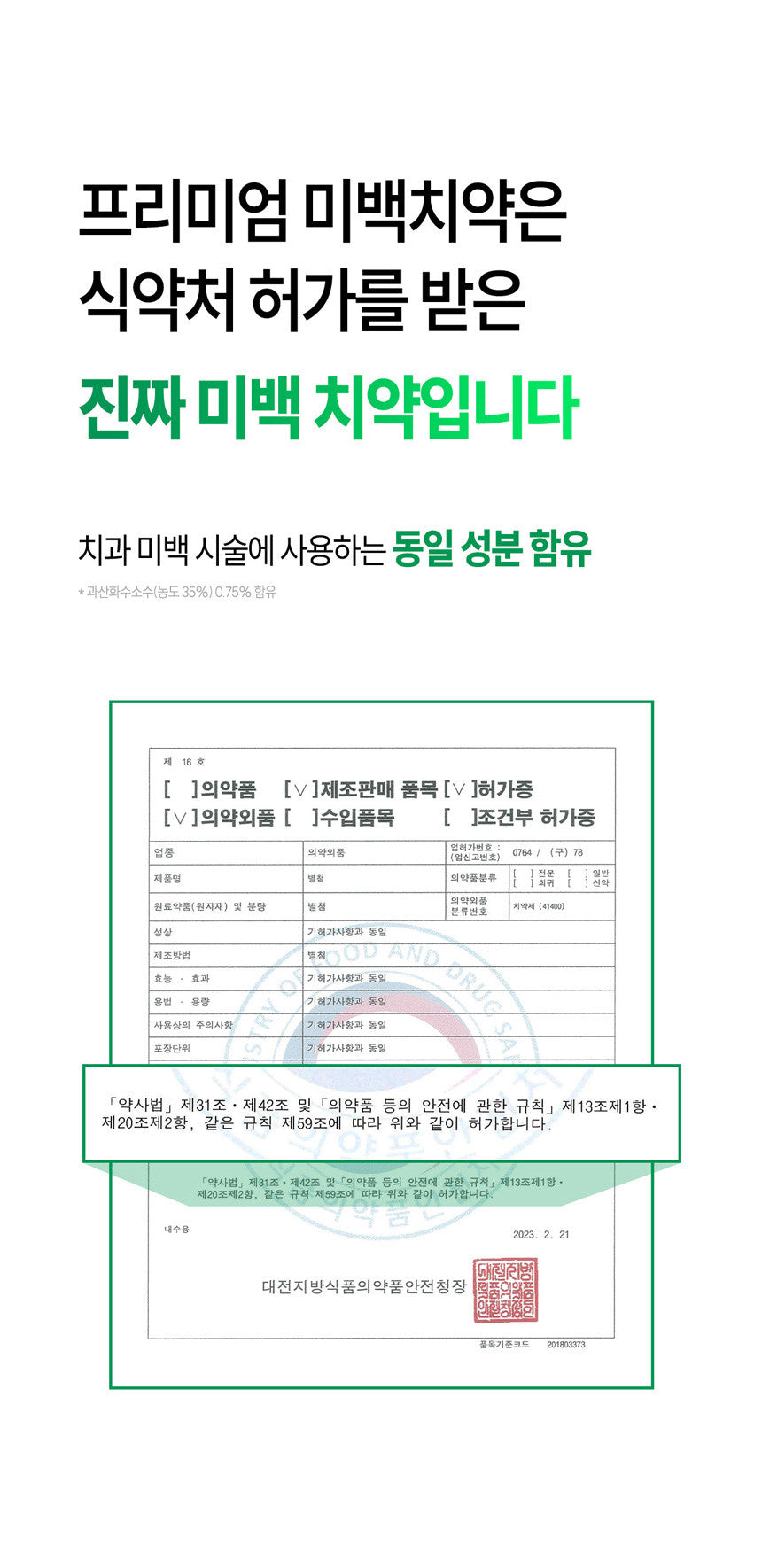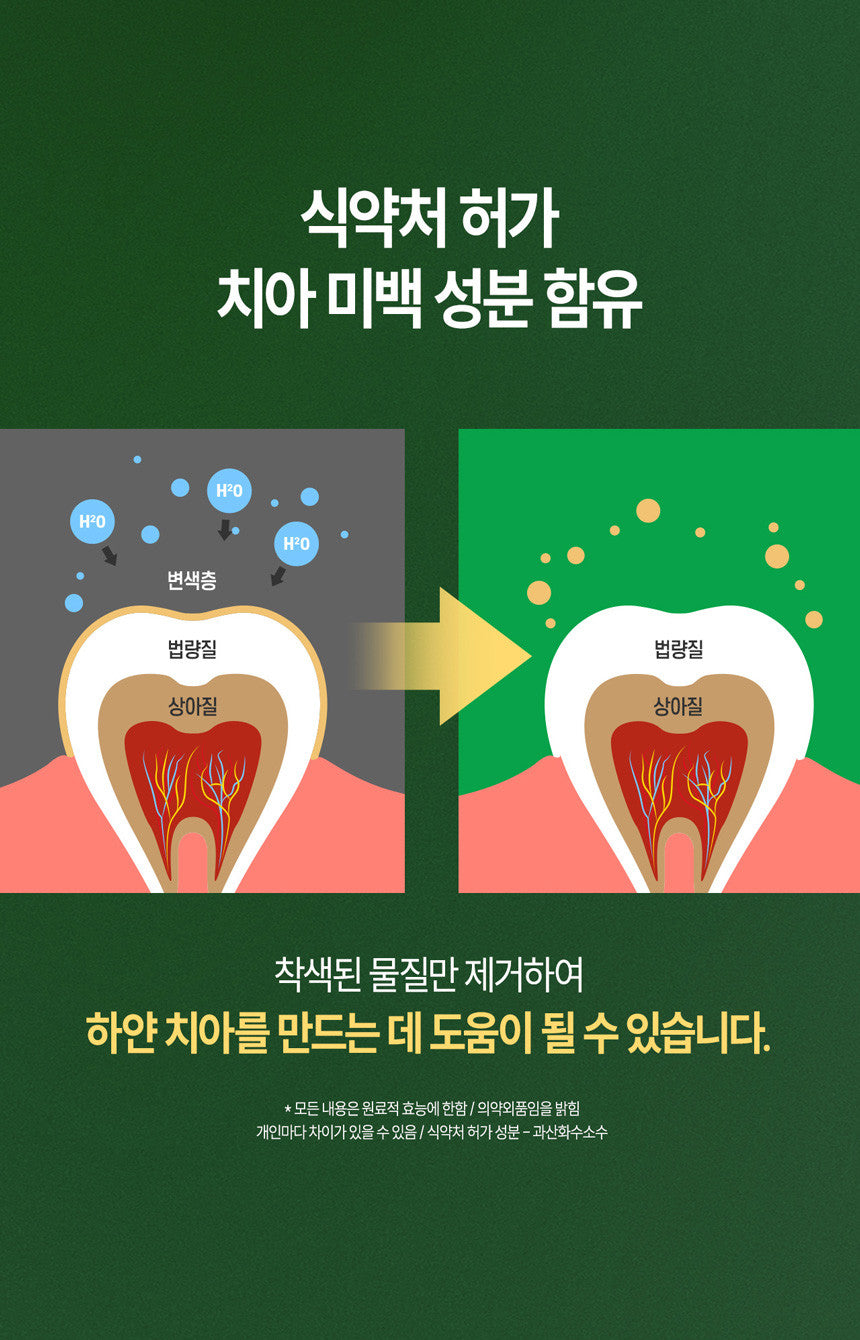 - Authentic Whitening: Incorporates genuine whitening agents, including 35% Hydrogen Peroxide, recognized by the Korean Ministry of Food and Drug Safety.