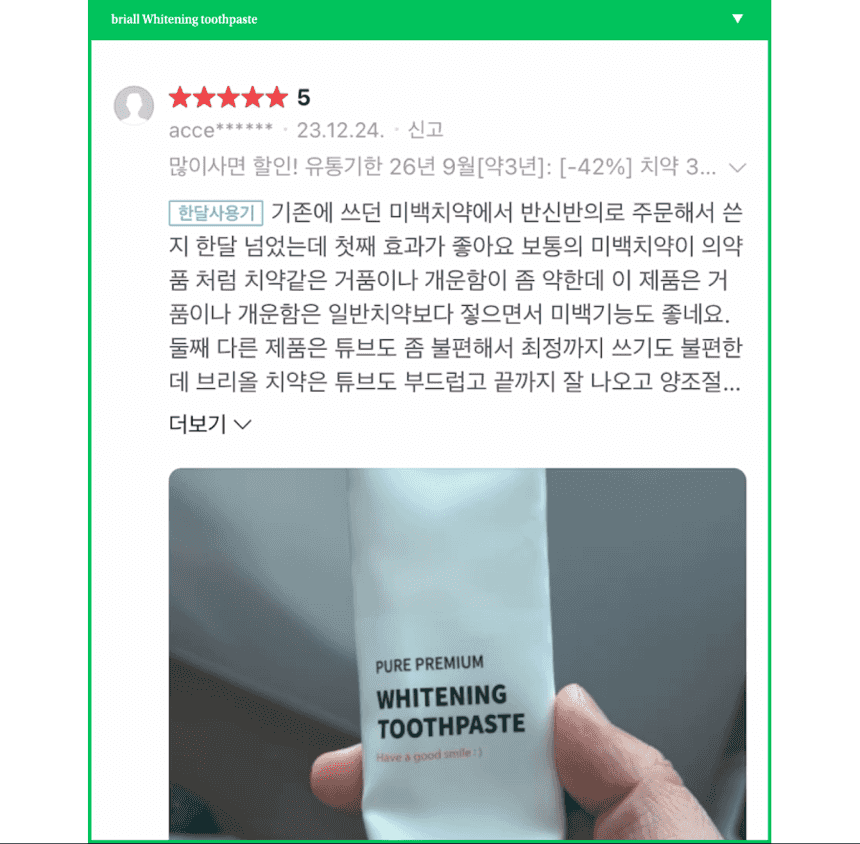 Elevate your dental care routine with Briall Premium Teeth Whitening Toothpaste, a product at the forefront of oral hygiene innovation. Celebrated as the top choice in 2024, this toothpaste has garnered attention for its proven efficacy and safety, amassing impressive figures with 14,131 purchases and a staggering sales volume of 700,000 units. Its remarkable repurchase rate of 82.4% and the overwhelming number of positive reviews (52,101) with an average satisfaction score of 4.5/5 are testaments to its unmatched quality and performance.