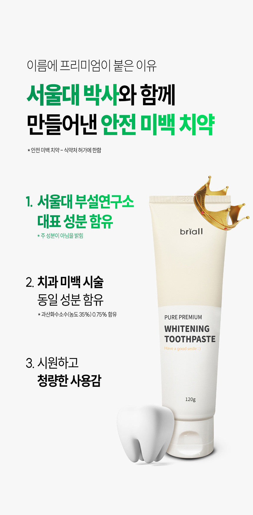 - Authentic Whitening: Incorporates genuine whitening agents, including 35% Hydrogen Peroxide, recognized by the Korean Ministry of Food and Drug Safety.