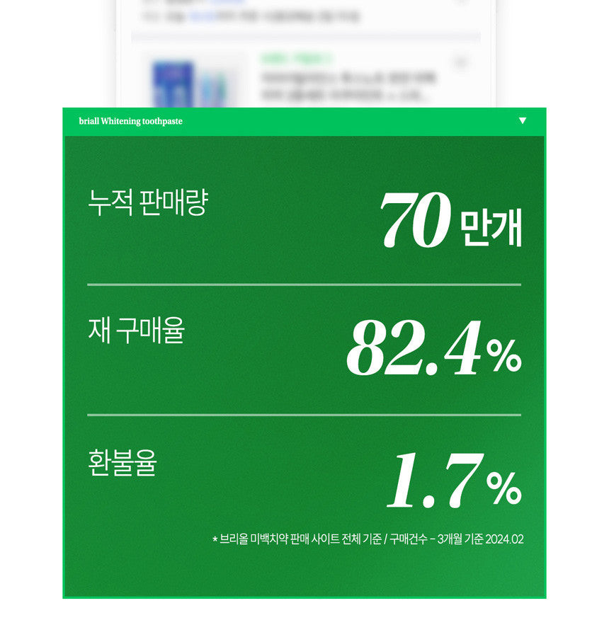 Elevate your dental care routine with Briall Premium Teeth Whitening Toothpaste, a product at the forefront of oral hygiene innovation. Celebrated as the top choice in 2024, this toothpaste has garnered attention for its proven efficacy and safety, amassing impressive figures with 14,131 purchases and a staggering sales volume of 700,000 units. Its remarkable repurchase rate of 82.4% and the overwhelming number of positive reviews (52,101) with an average satisfaction score of 4.5/5 are testaments to its unmatched quality and performance.