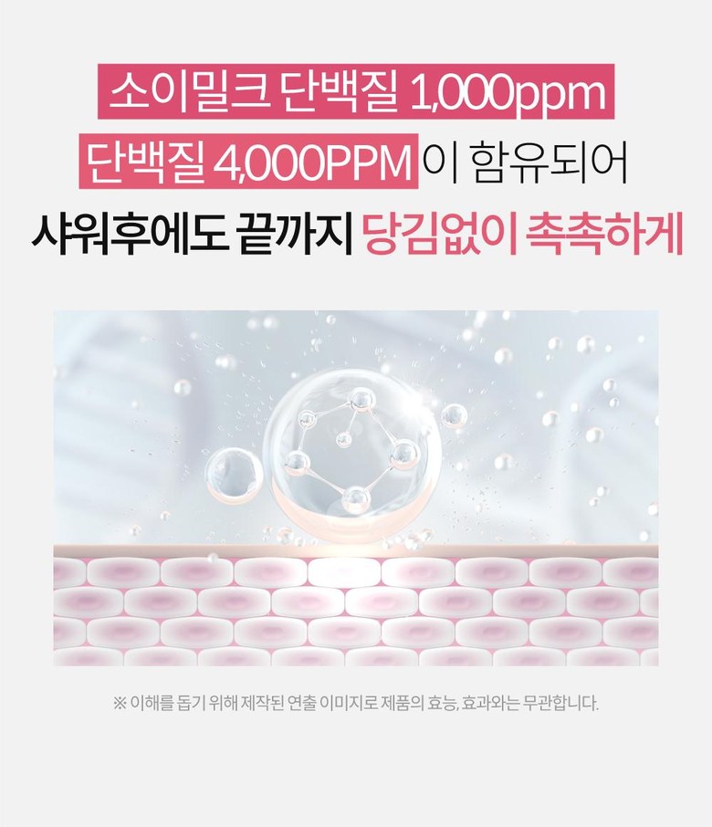 - Contains soy milk protein 1000ppm and protein 4000ppm for lasting moisture without tightness post-shower