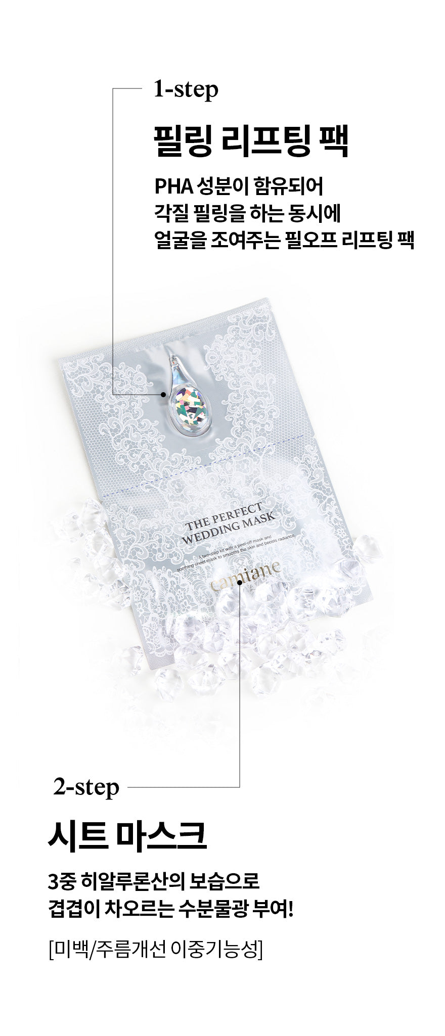 I recently tried the Camiane The Perfect Wedding Mask, and I was thoroughly impressed. The two-step process is well thought out; the Step 1 peeling lift pack contains PHA and panthenol that effectively exfoliates dead skin cells while providing a lifting effect. After using it, my skin felt smoother and firmer right away. Then comes the sheet mask infused with triple hyaluronic acid in Step 2, which delivered intense hydration without feeling heavy or greasy. My complexion looked radiant after just one use! This has truly become an essential part of my skincare routine before any special occasion.
