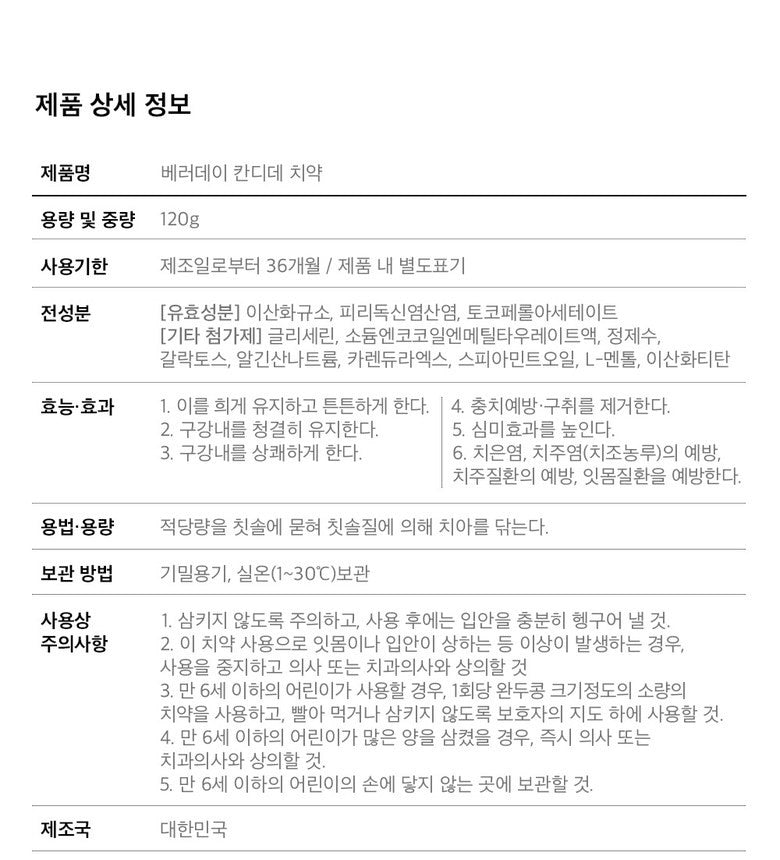 I just gotta say, this Candide toothpaste really blew my mind! From the moment I squeezed it out of the tube, you can tell there’s some serious craftsmanship behind it. The texture is smooth and not gritty at all; it’s almost like a creamy balm for your mouth. With those natural ingredients like peppermint and calendula extracts, it feels luxurious every time I brush. What’s great too is how gentle yet effective it is – no harsh additives to worry about means peace of mind for me and my kiddos. After using this gem regularly, I’ve noticed that our smiles feel way fresher longer! Truly quality stuff from Korea right here.
