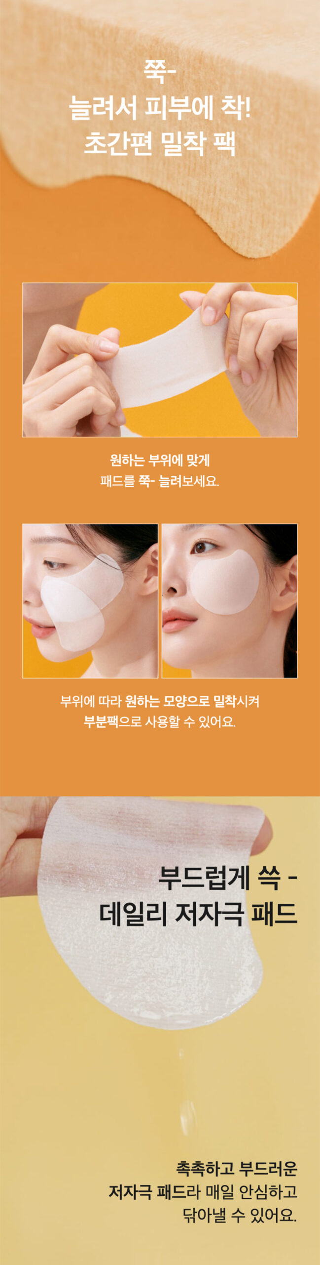 Elastic, Adherent Fabric: Sticky essence layer clings to skin, ideal for forehead, cheeks, under-eyes or chin.