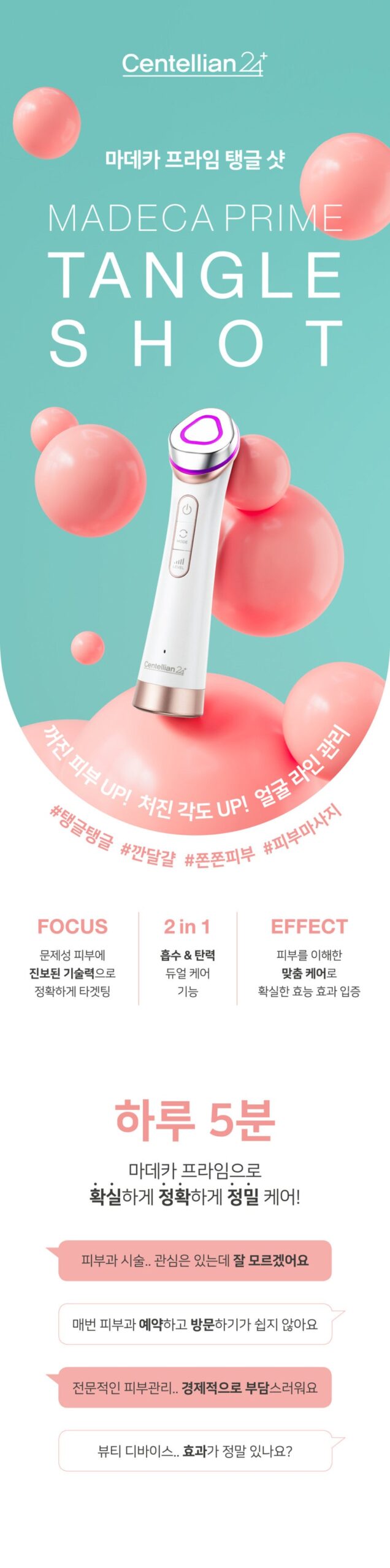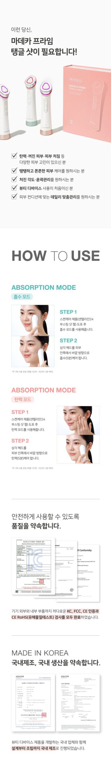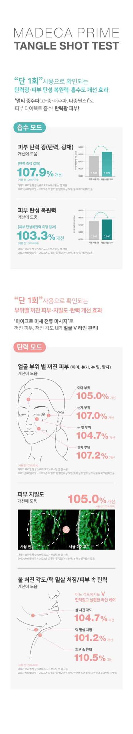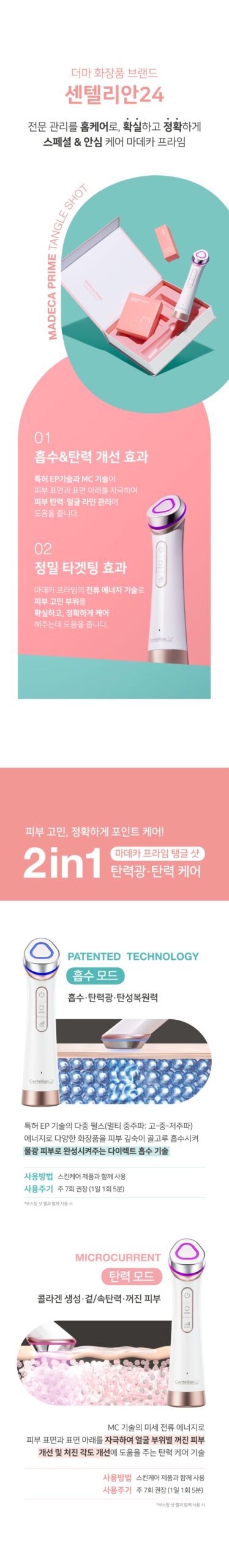 ※ Tangle shot care ON → Skin, elasticity restoration. Firming glow → EP absorption care → Sagging angle, contour, collagen production → MC elasticity care → Firm skin