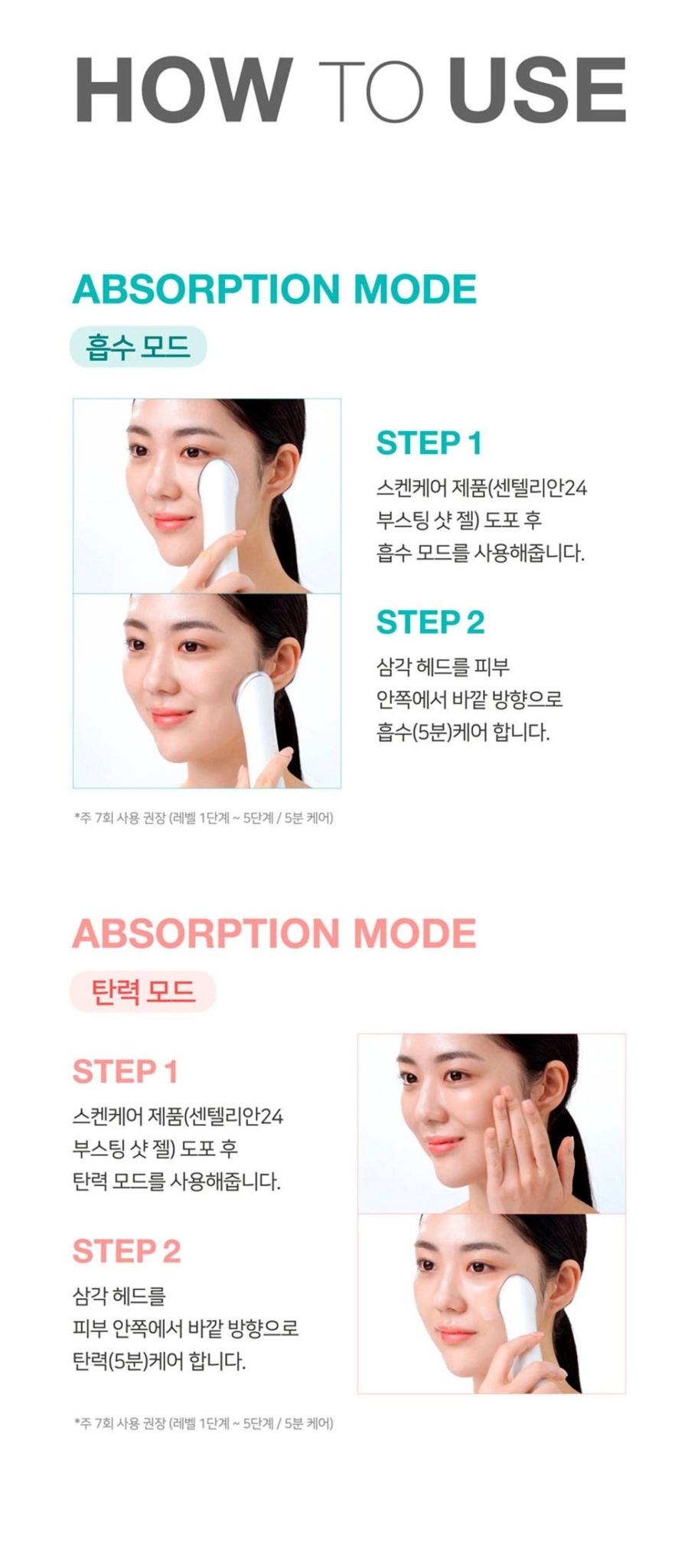 Step 1: After applying skin care product (Centellian 24 Boosting Shot Gel), use absorption mode.