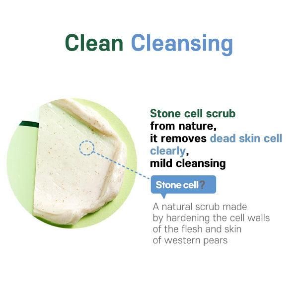 - Clean face wash formulated with Stone Cell, a natural scrub made by hardening the cell wall in the flesh and skin of Western Pears. Can remove dead skin cell cleanly.