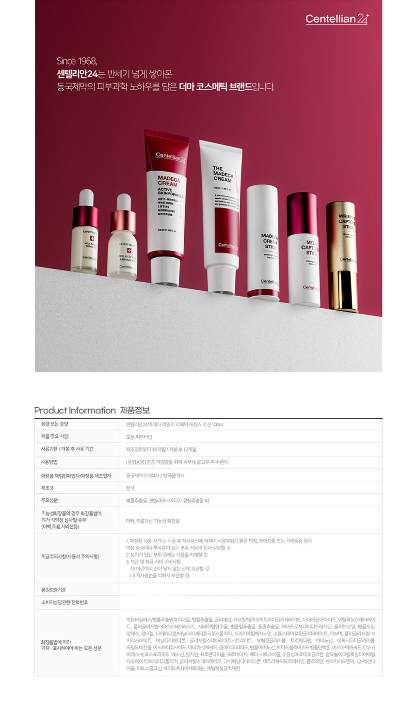 Experience the next level of skin repair and protection with Centellian24 Madeca Daily Repair Essence Lotion, your daily ally against environmental damage and irritation.