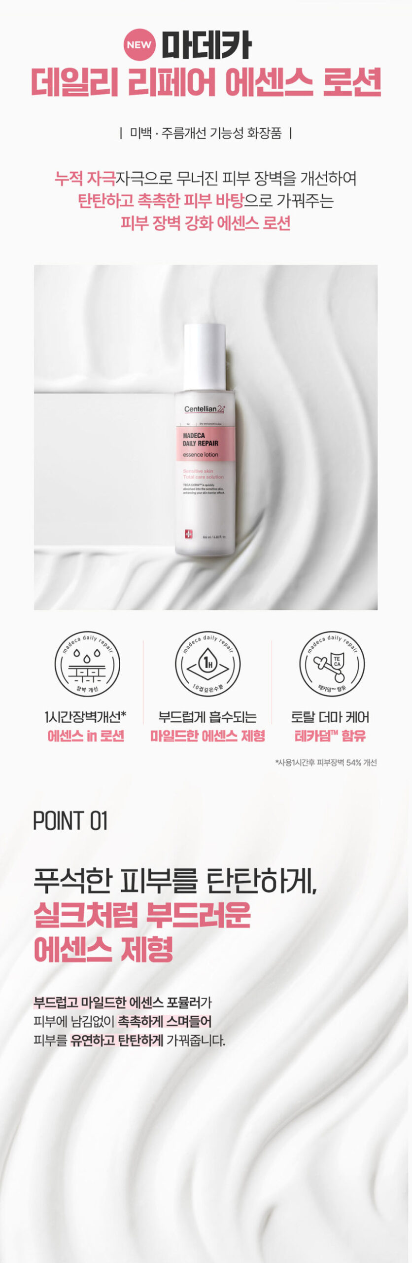 Experience the next level of skin repair and protection with Centellian24 Madeca Daily Repair Essence Lotion, your daily ally against environmental damage and irritation.