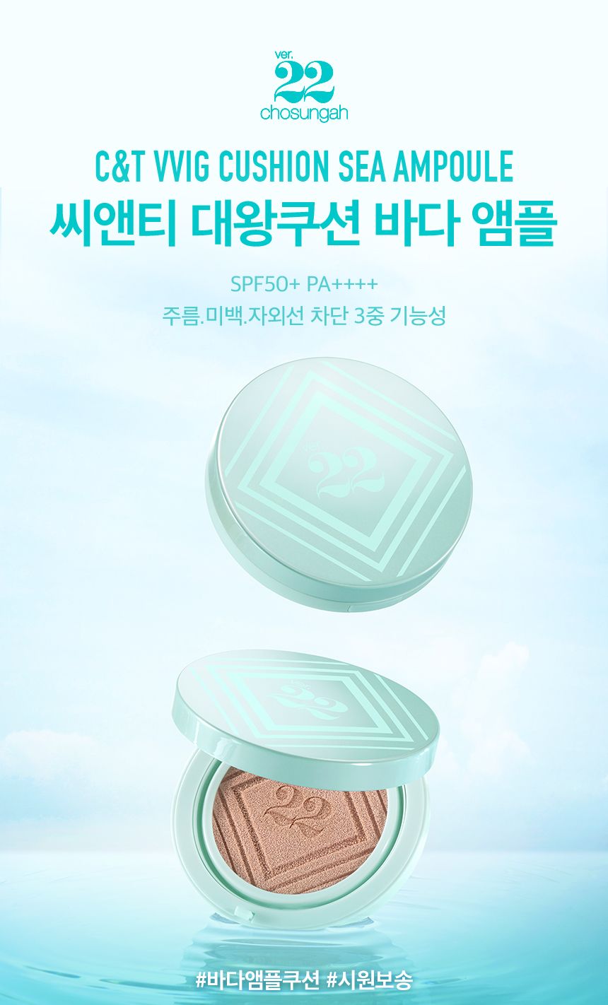 サンディエゴで日差しの強いビーチ生活を送っている私にとって、このchosungah 22 C&T VVIGクッションシーアンプルSPF50+は本当に救済です。最初に驚いたのは、その軽やかな付け心地。過去には重くてこっそりバレるようなカバー力があったファンデーションが、今回は異なるアプローチで海から得た栄養素をもとにしていて、しっとりした仕上がりですが、一切ベタつかない。それぞれ肌タイプによって感じ方がありますが、自分では「マット」で乾燥させず潤すDewy Matt感覚!美白機能まで併せ持ちなため、お出かけ前にも使いやすく、更にはUV対策もあるので紫外線トラブルとは無縁になれる一品だと思います。