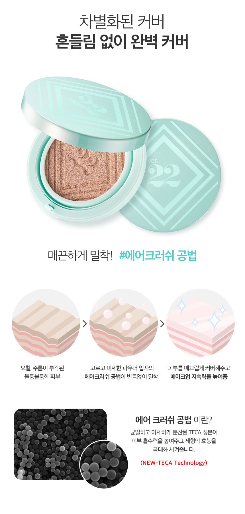 Air Crush Technique: Uniformly and finely dispersed TECA components enhance skin absorption and maximize efficacy. (NEW-TECA Technology)