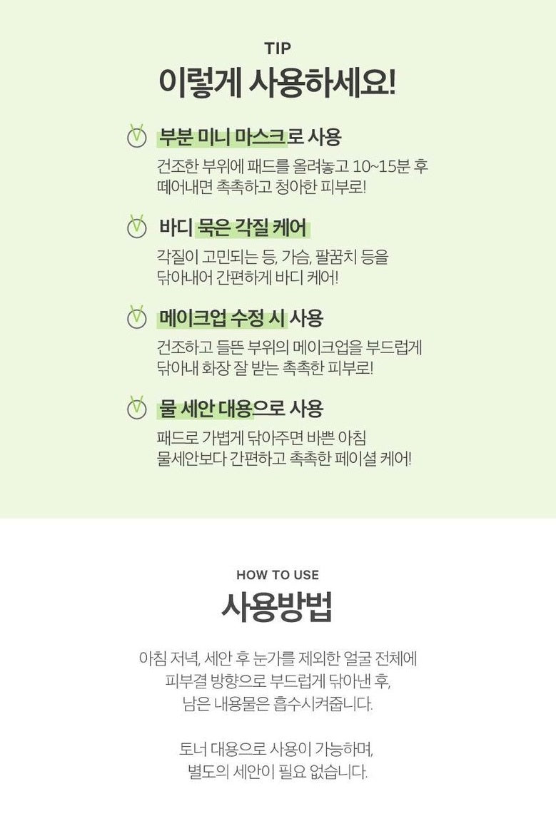 - Use as a partial mini mask: Place the pad on dry areas for 10-15 minutes for moist and clear skin.