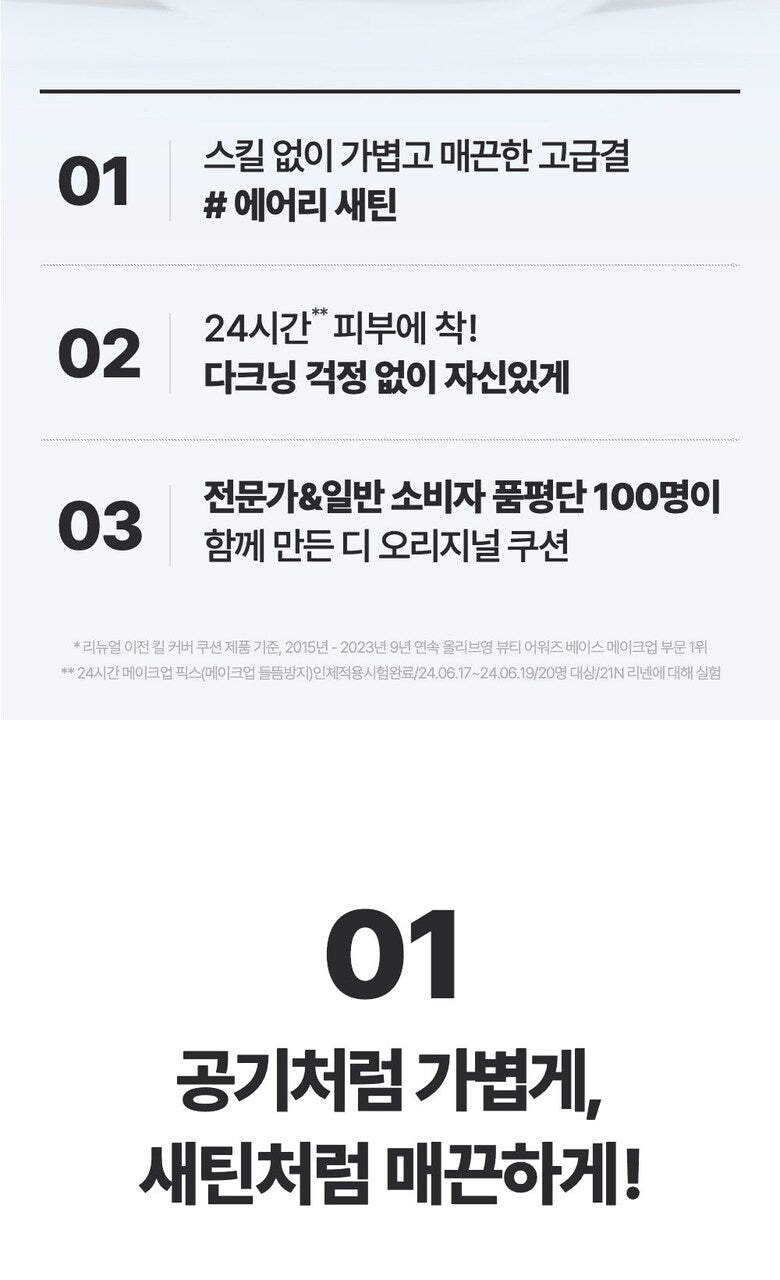 Light and Precise Coverage: The cushion is infused with cover powders that gently envelop the skin, along with lightweight oils that adhere thinly for precise application.