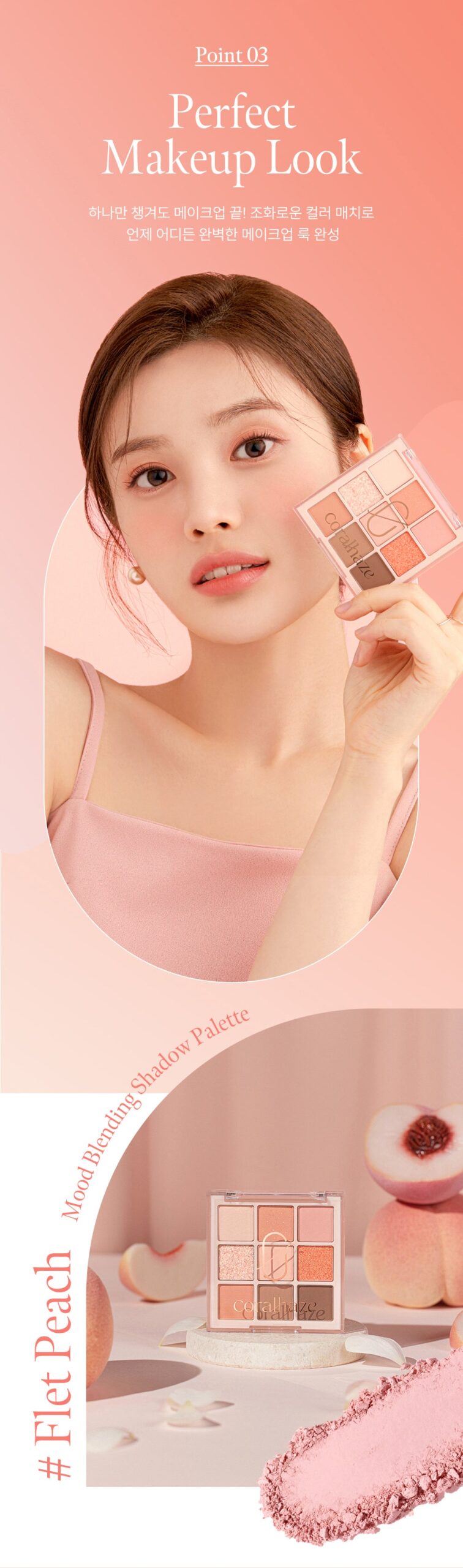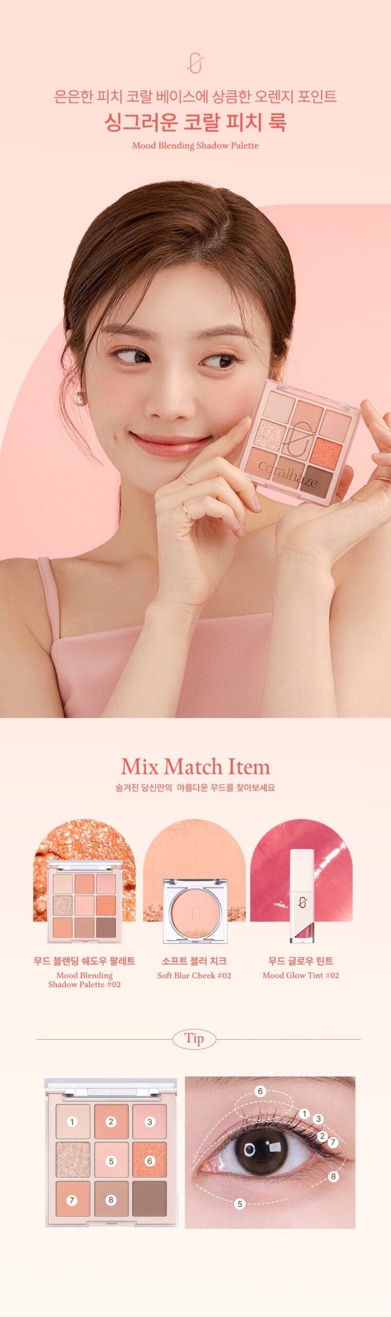 Create a fresh, coral-peach look with a hint of orange for an extra pop. The shades blend seamlessly to achieve a natural yet eye-catching look that’s soft, sweet, and ideal for any occasion.