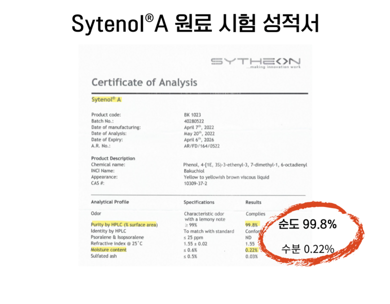 Contains Syteol® A (bakuchiol) from Sytheon, a representative bakuchiol raw material company used in thesis among various raw material companies that make bakuchiol raw materials