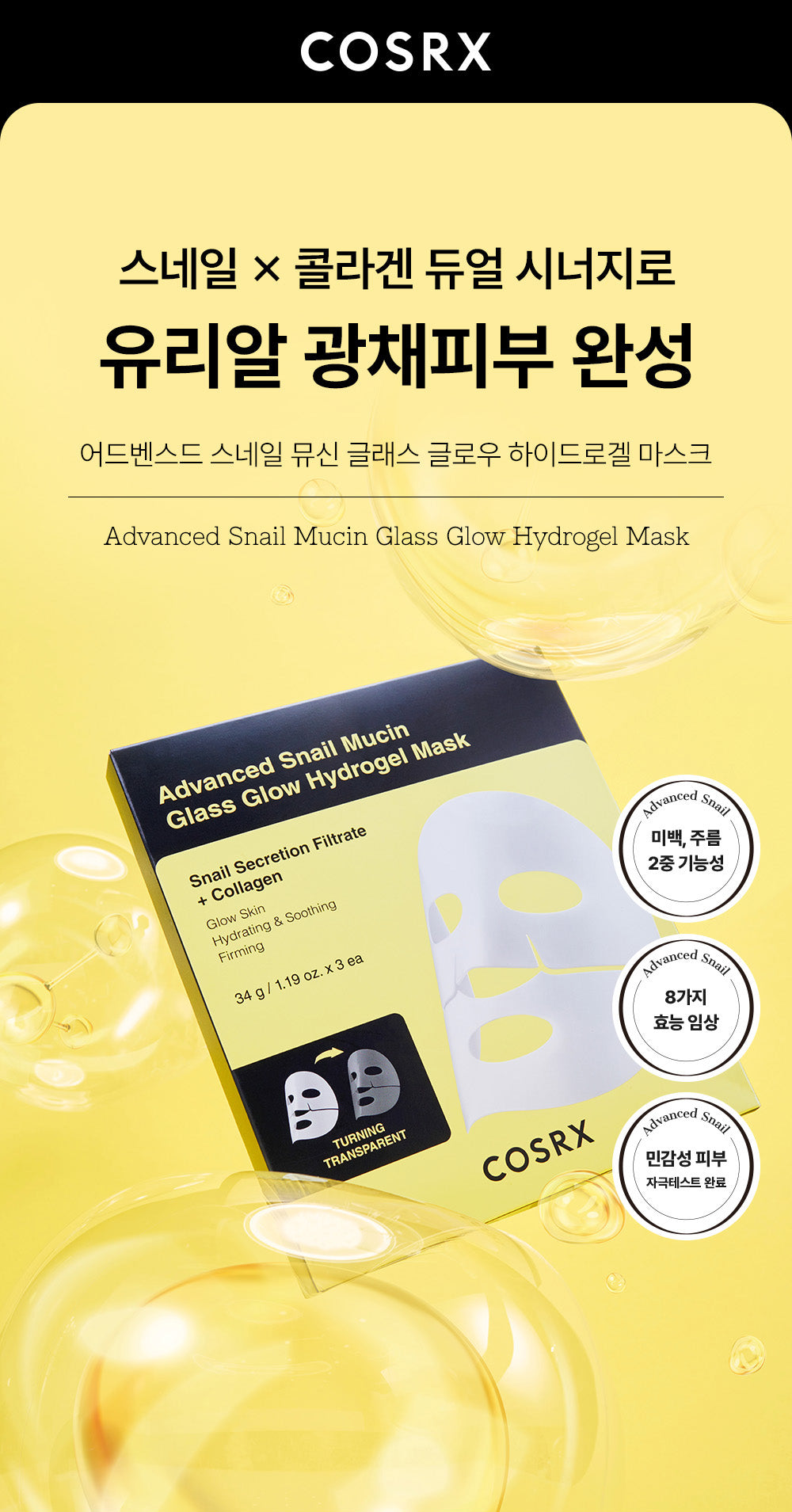 COSRX Advanced Snail Mucin Glass Glow Hydrogel Mask 34g*3ea