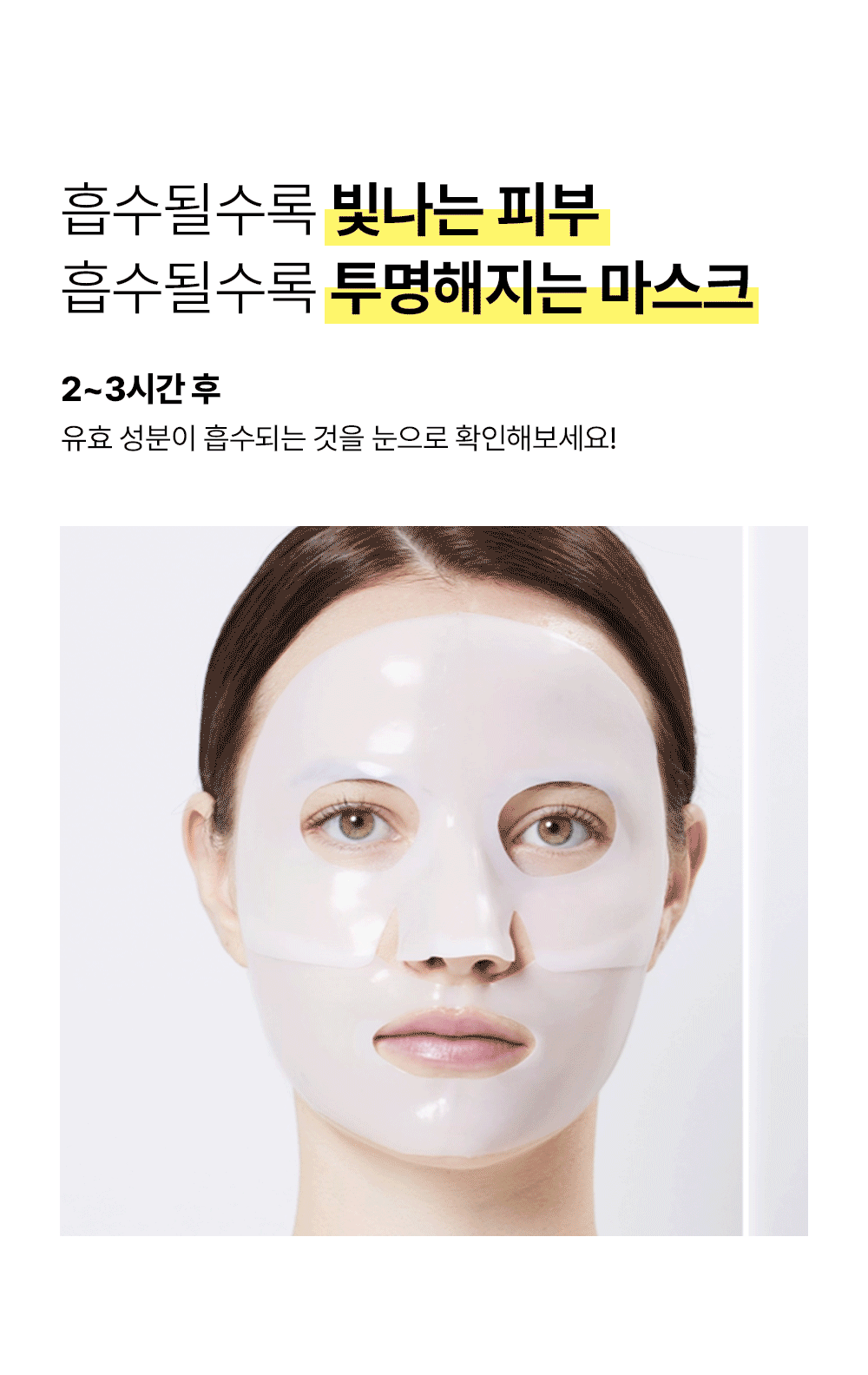 3. Leave on for 2-3 hours, or until the mask turns transparent. Gently remove and pat the remaining essence into your skin for full absorption.
