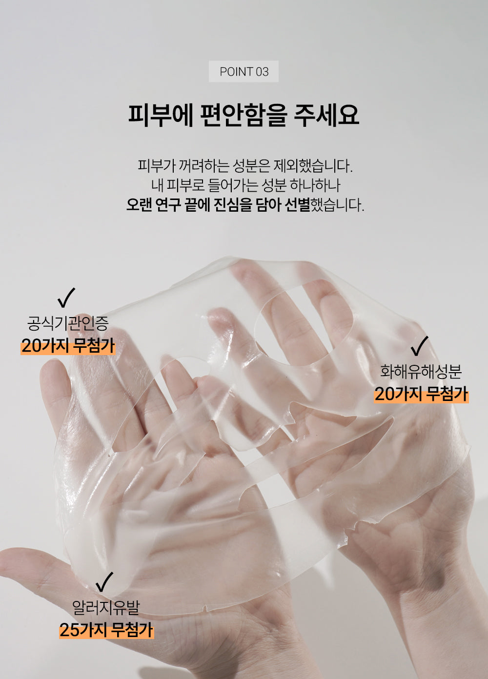 This water-soluble hydrogel mask, certified by the Ministry of Food and Drug Safety, reacts to your skin temperature for optimal absorption.