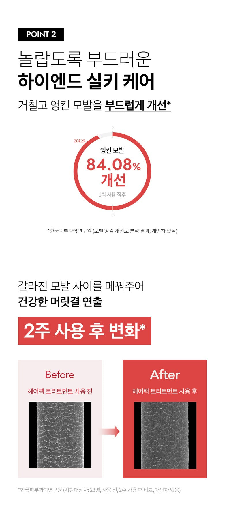 ✔ High-End Silky Care – 84.08% Improvement in Hair Smoothness
