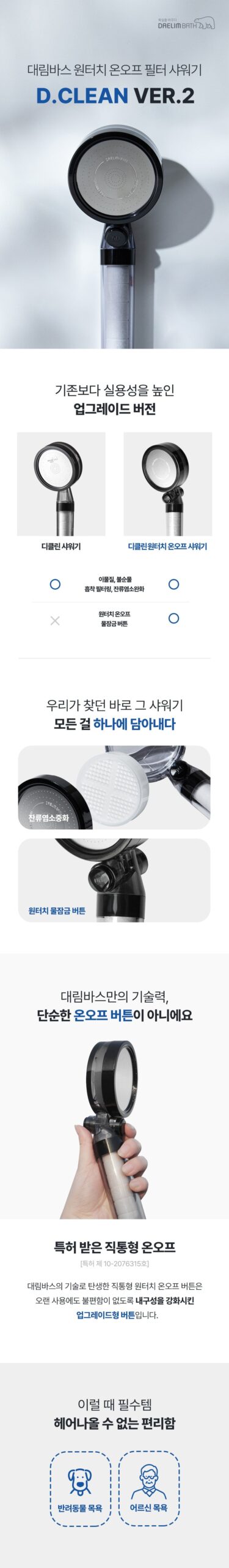 Experience enhanced durability and convenience with our patented direct on/off system (Patent No. 10-2076315). The newly upgraded button ensures long-lasting performance, making your shower experience smoother and more efficient.