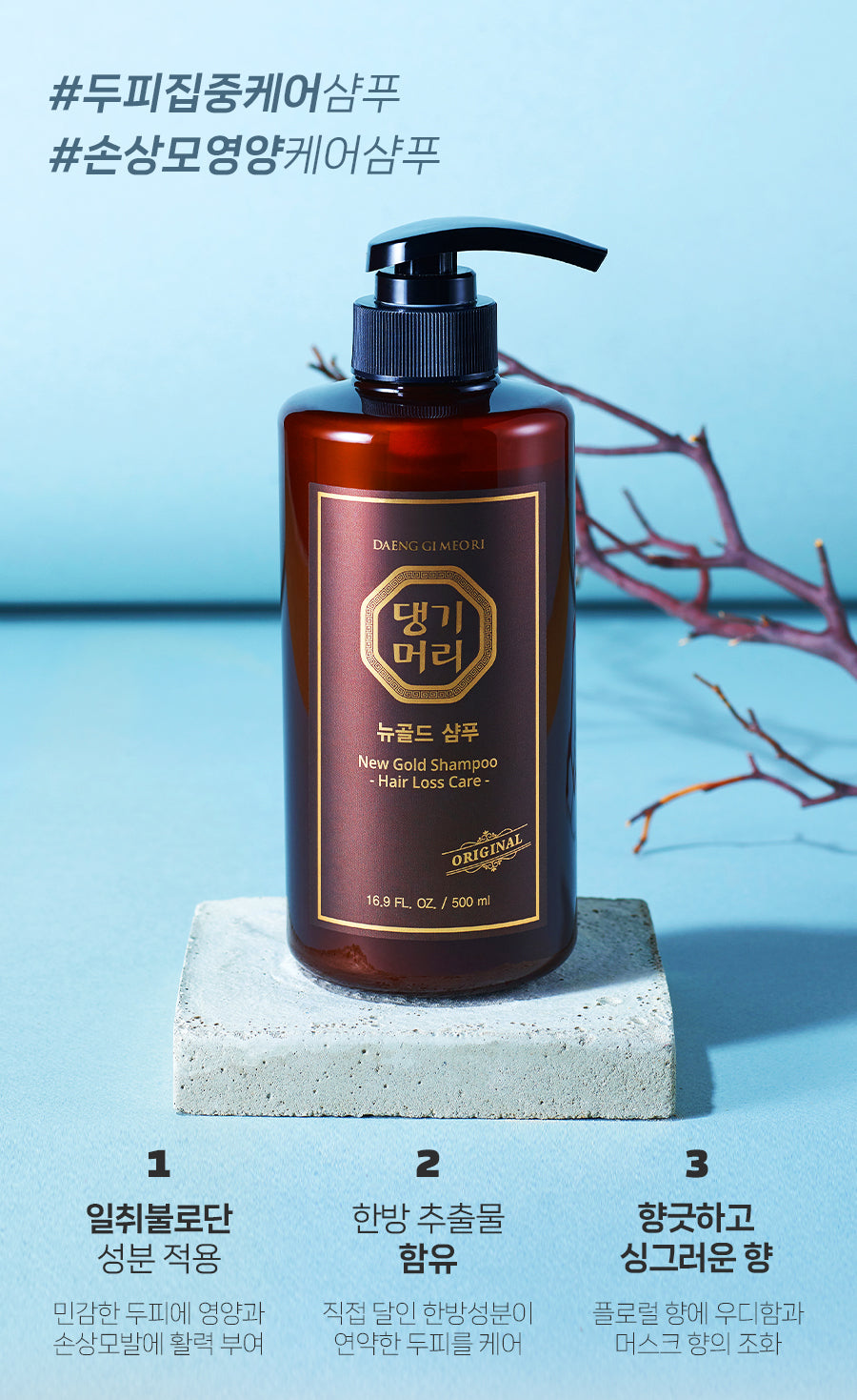 Daenggimeori, renowned for its deep-rooted expertise in hair care, brings you this traditional herbal shampoo. Developed through: