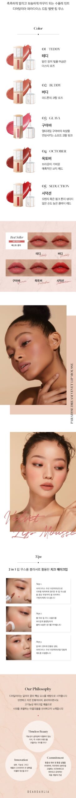 Dear Dahlia Paradise Dream Velvet Lip Mousse is an exquisite lip product designed to enhance your beauty routine with its multi-functional and luxurious characteristics. This velvet lip mousse delivers a plush, velvety finish that feels as dreamy as it looks.