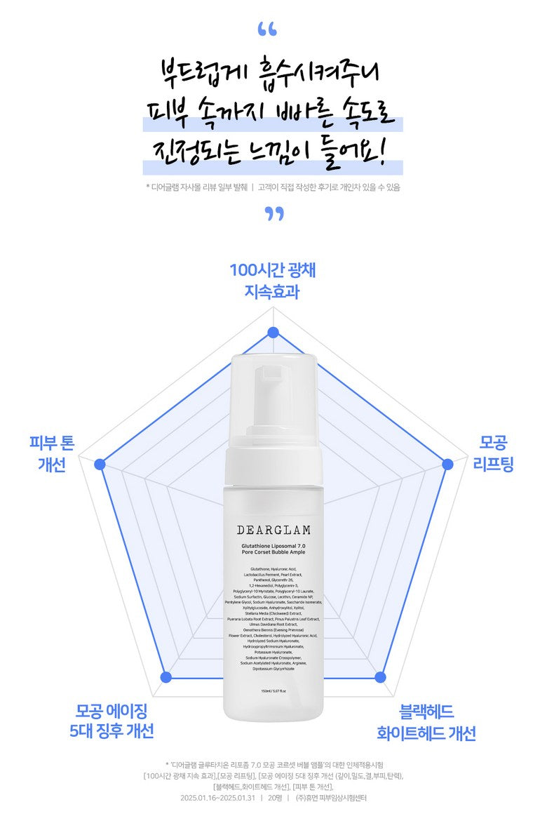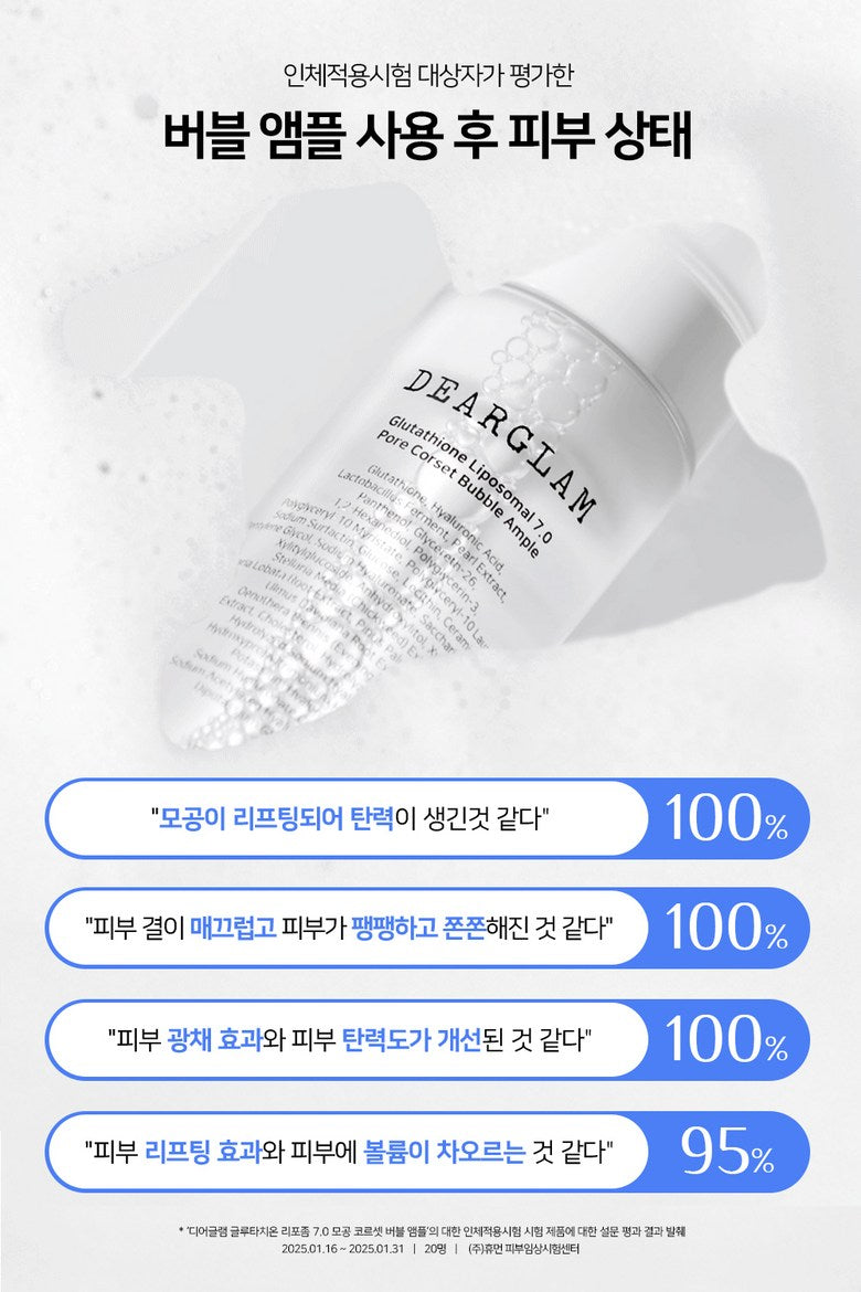 💎 Get the Ultimate Pore-Tightening & Glow-Boosting Experience with DEARGLAM Glutathione Liposomal 7.0 Pore Corset Bubble Ampoule!