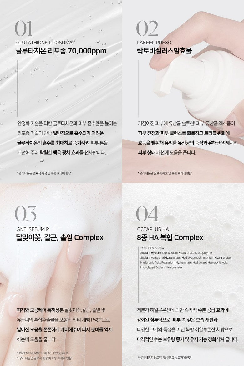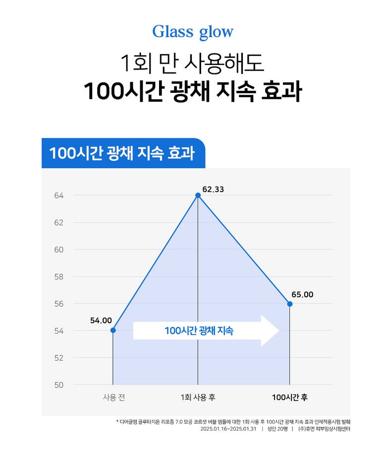 Your skin’s optimal acidic pH level (5.0-7.0) helps maintain a strong skin barrier and prevents moisture loss. The DEARGLAM Glutathione Liposomal 7.0 Pore Corset Bubble Ampoule has a pH of 5.9, ensuring gentle and effective care while restoring the skin’s balance.