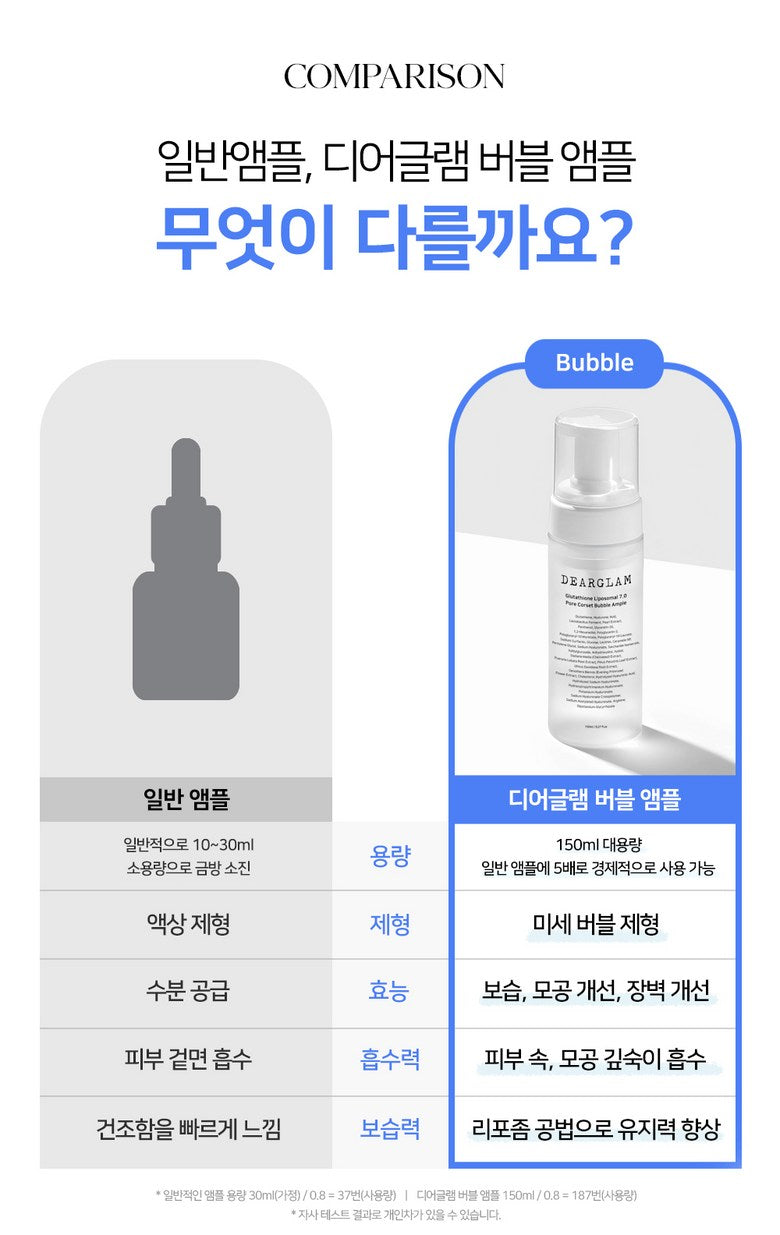 DEARGLAM Glutathione Liposomal 7.0 Pore Corset Bubble Ampoule (150ml)