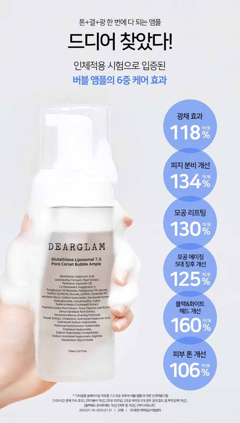 💎 Get the Ultimate Pore-Tightening & Glow-Boosting Experience with DEARGLAM Glutathione Liposomal 7.0 Pore Corset Bubble Ampoule!
