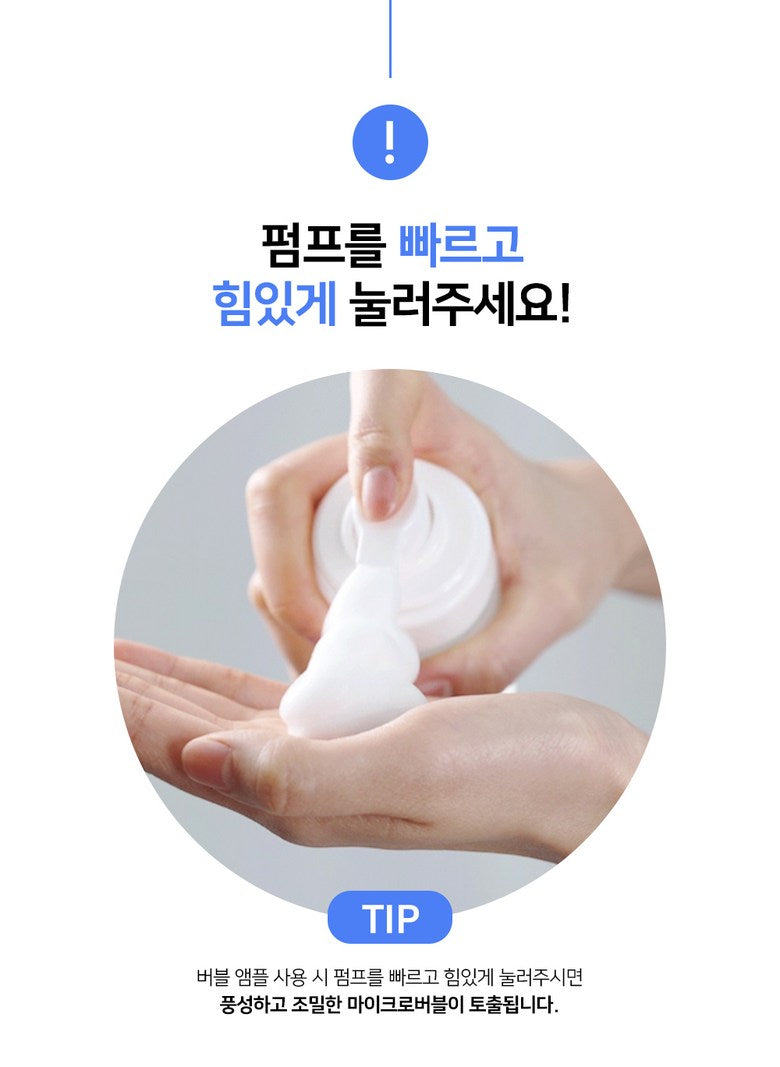 1️⃣ Pump the ampoule firmly and quickly for a dense, rich foam.