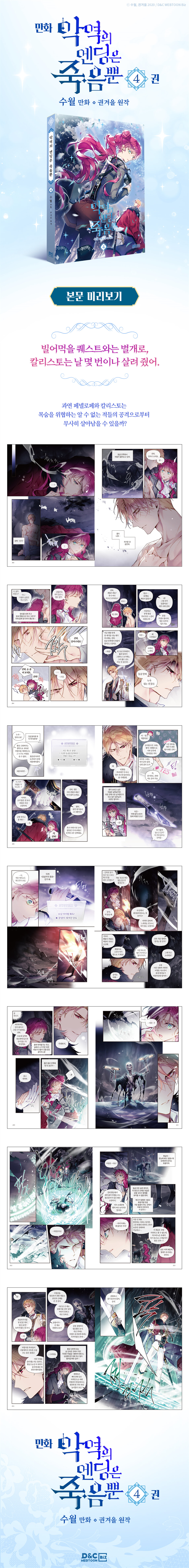 Death is the Only Ending for the Villainess is a Korean webtoon about a young woman named Penelope Eckhart, who was born as an illegitimate child of a wealthy family and treated poorly by her relatives. One day, she finds herself reincarnated as the villainess in a dating simulation game. Knowing that the only way to survive is to successfully capture the hearts of one of the five male lead characters, Penelope embarks on a journey to change her fate. However, things are not as simple as they seem, as the real heroine of the game is set to return soon, and if Penelope fails to capture one of the male leads, her only fate will be death. As she navigates through the game’s world, Penelope must make difficult decisions and face many challenges. But with her intelligence, wit, and determination, she sets out to rewrite her destiny and escape the cruel fate that awaits her.