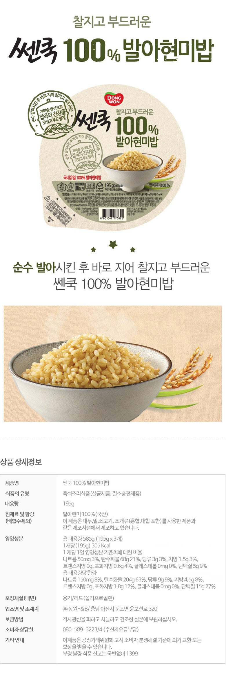 Dongwon F&B Co., Ltd. is located at 320 Yunboseon-ro, Dunpo-myeon, Asan-si, Chungcheongnam-do, ensuring that every grain of rice you receive is backed by our commitment to quality and customer satisfaction. Enjoy the healthful and delicious Sencook 100% Sprouted Brown Rice and bring the richness of Korean culinary tradition to your home.