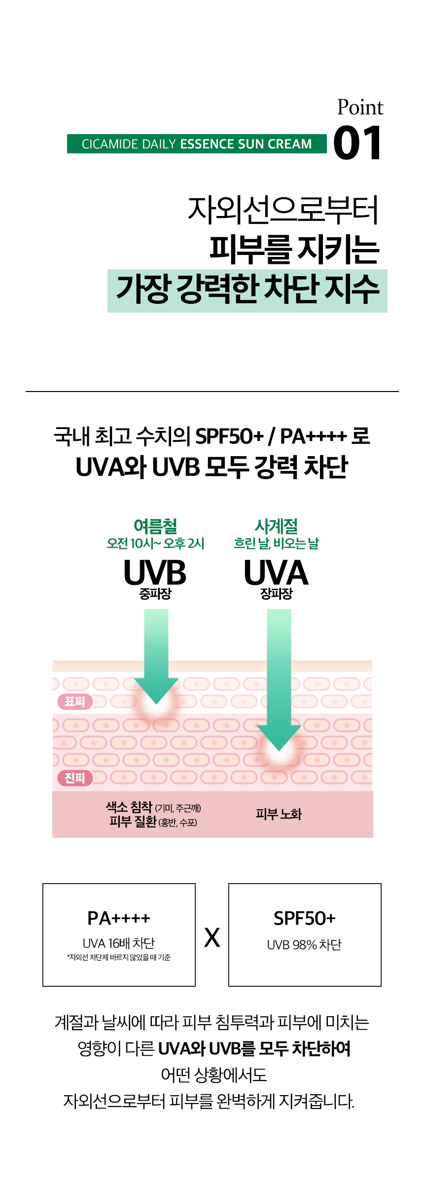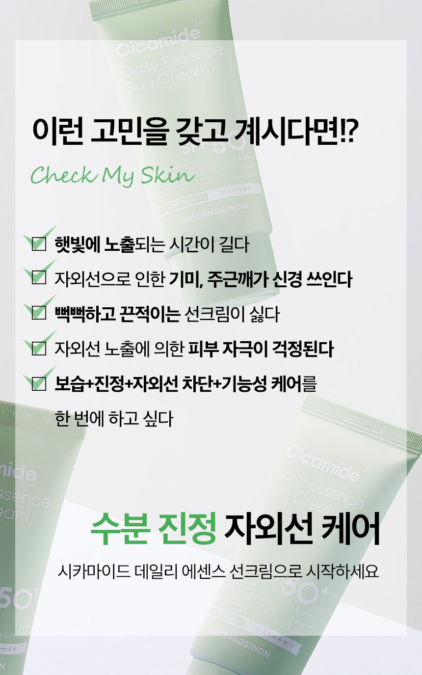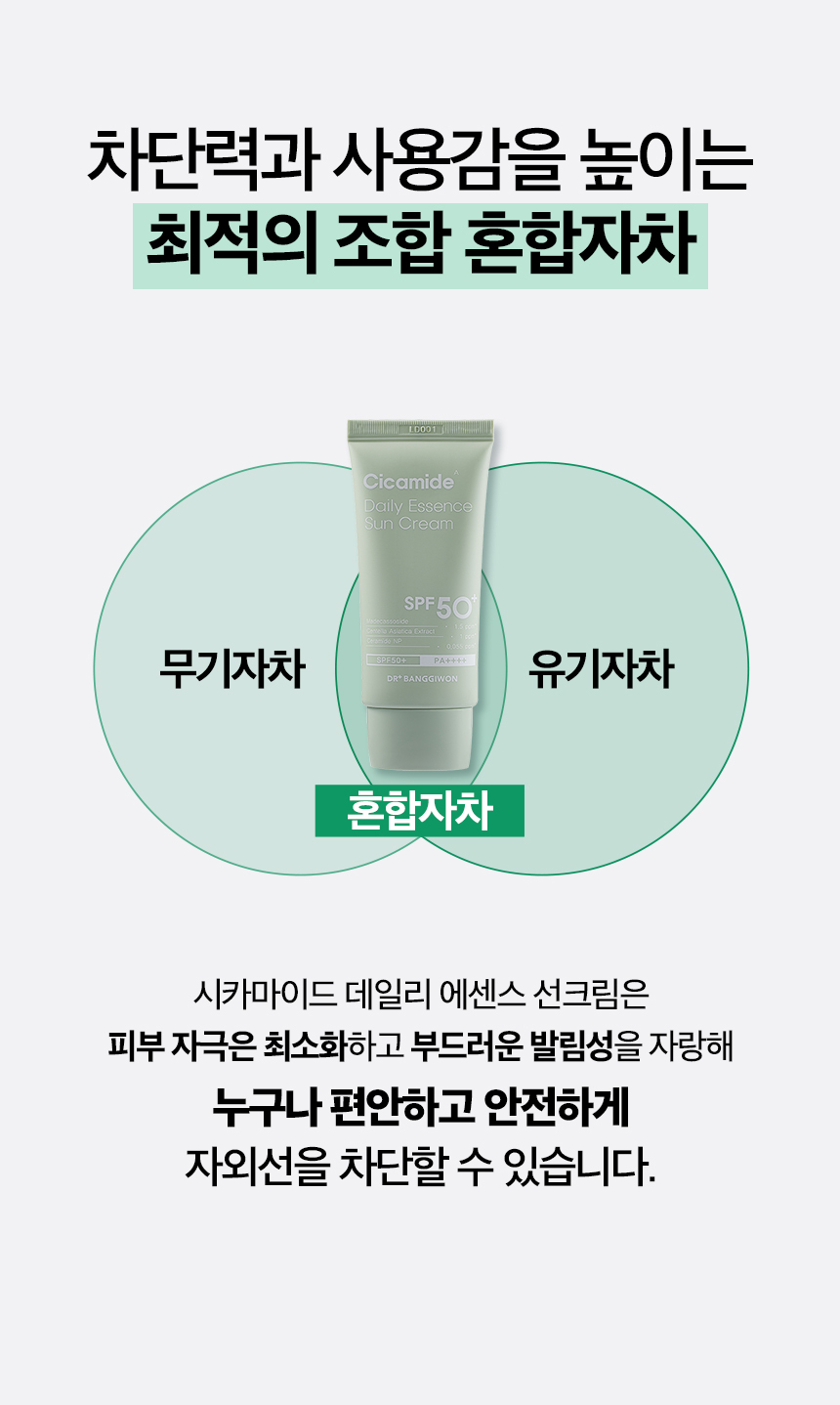 – Start with **Cicamide Daily Essence Sun Cream**