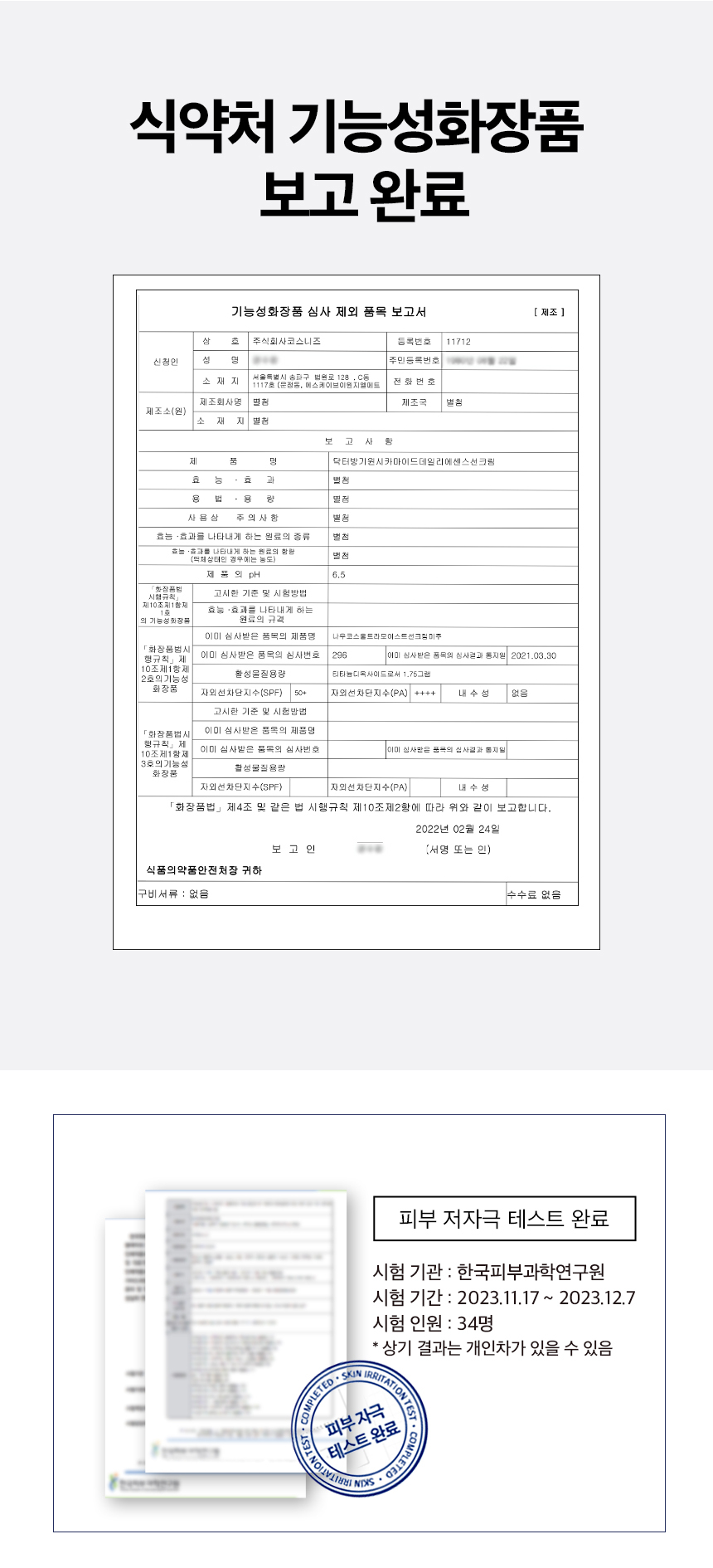 – **Ministry of Food and Drug Safety Functional Cosmetics Report completed**