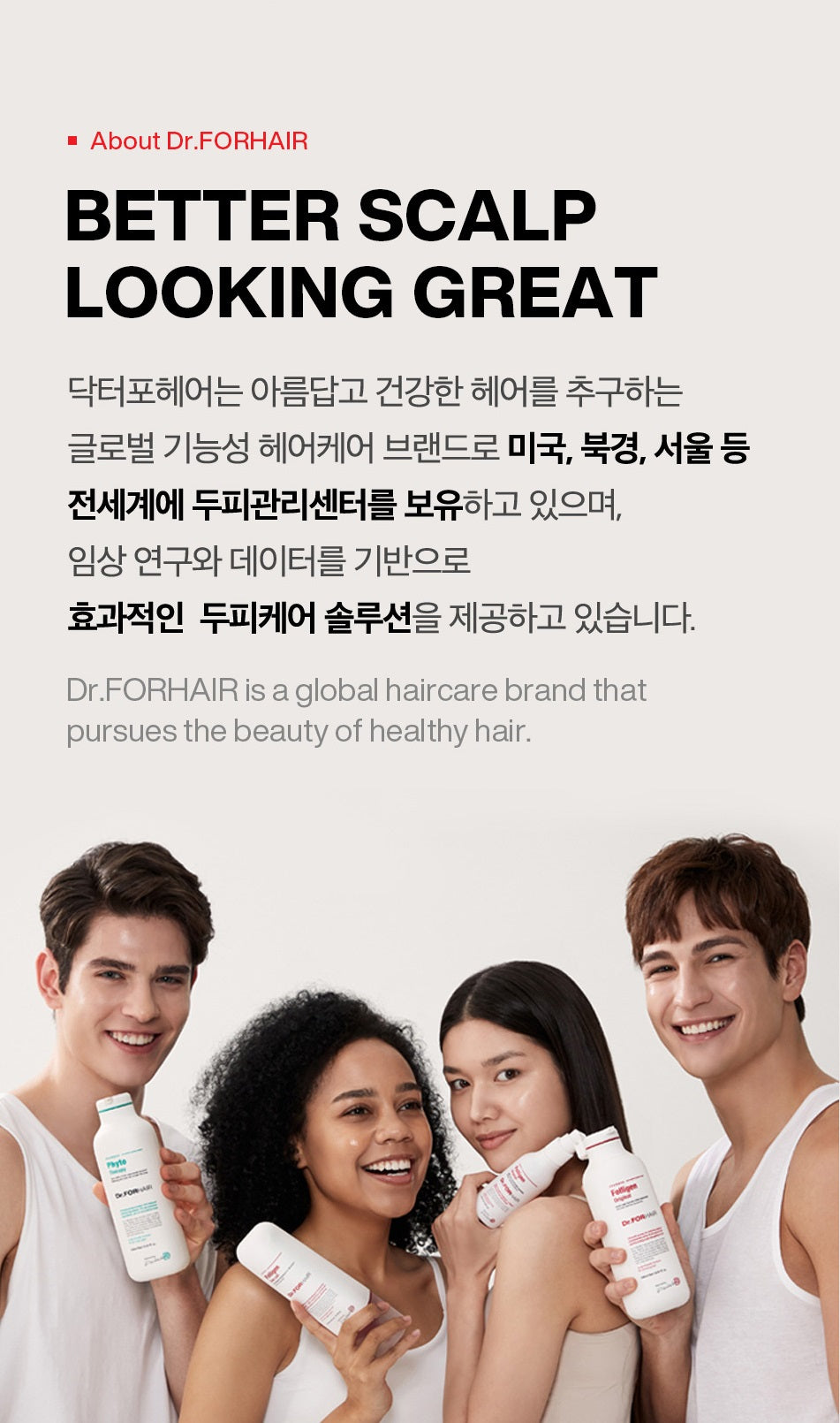 Dr. For Hair is a global functional hair care brand that pursues beautiful and healthy hair. It has scalp care centers around the world including the US, Beijing, and Seoul, and provides effective scalp care solutions based on clinical research and data.