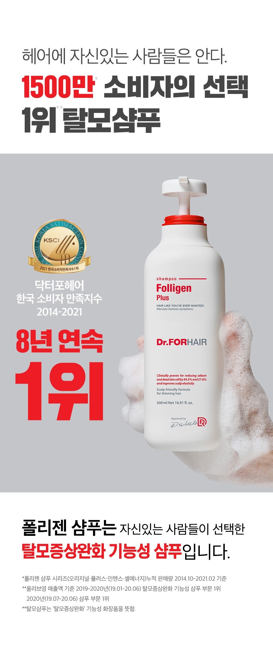 * 1st place in the functional shampoo category for alleviating hair loss symptoms in 2019-2020 (19.01-20.06) based on Olive Young sales