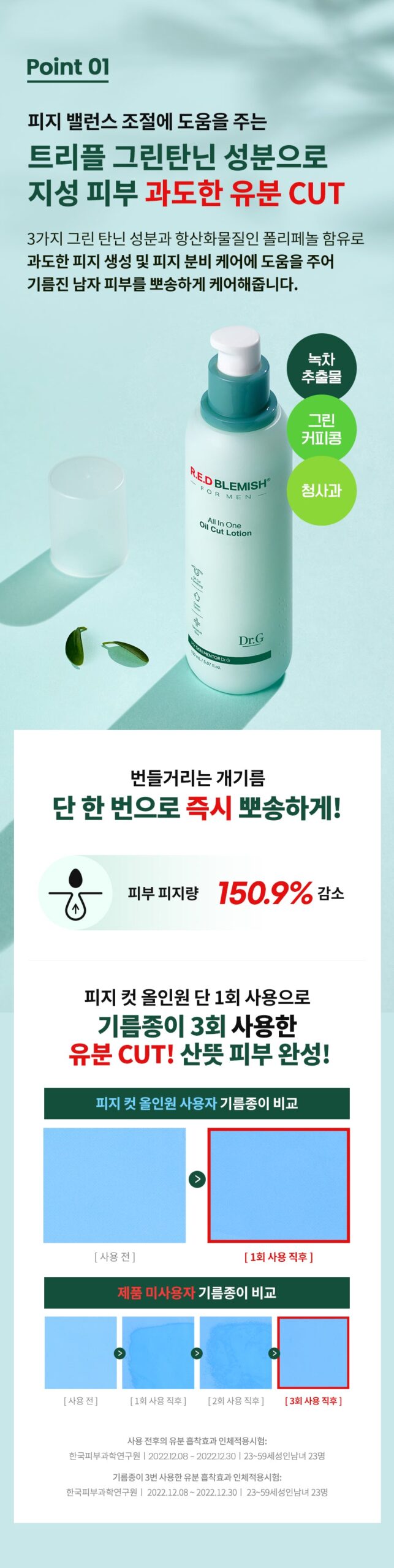 Red Blemish All-in-One Oil Cut Lotion is a versatile and effective solution for men dealing with oily skin, enlarged pores, and related concerns. Its unique combination of triple green tannin, 5-CICA complex, and a water tank gel formulation provides a comprehensive approach to managing sebum, ensuring skin remains hydrated, soothed, and healthy-looking.