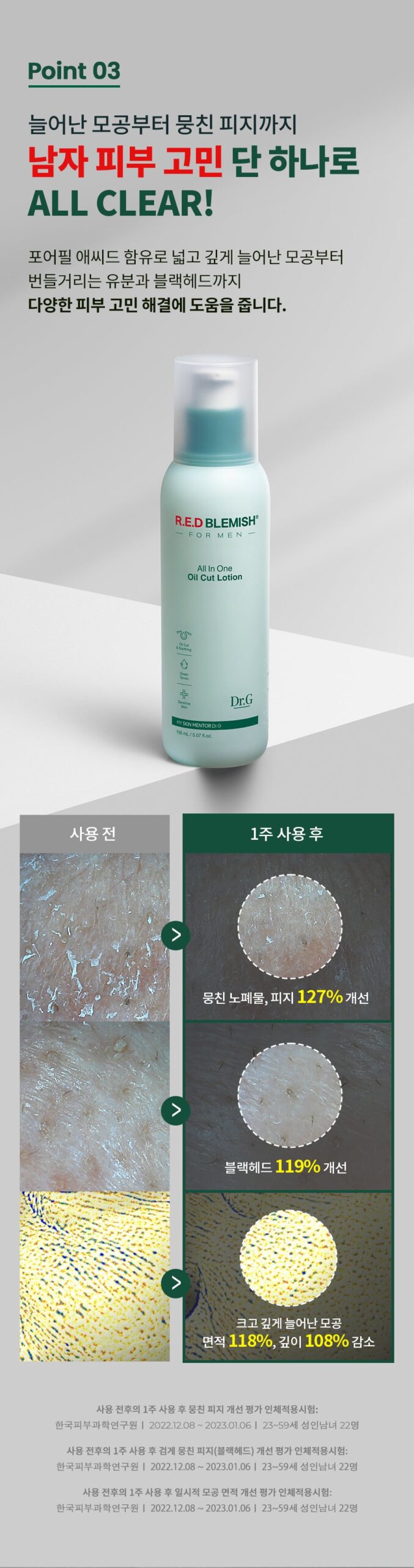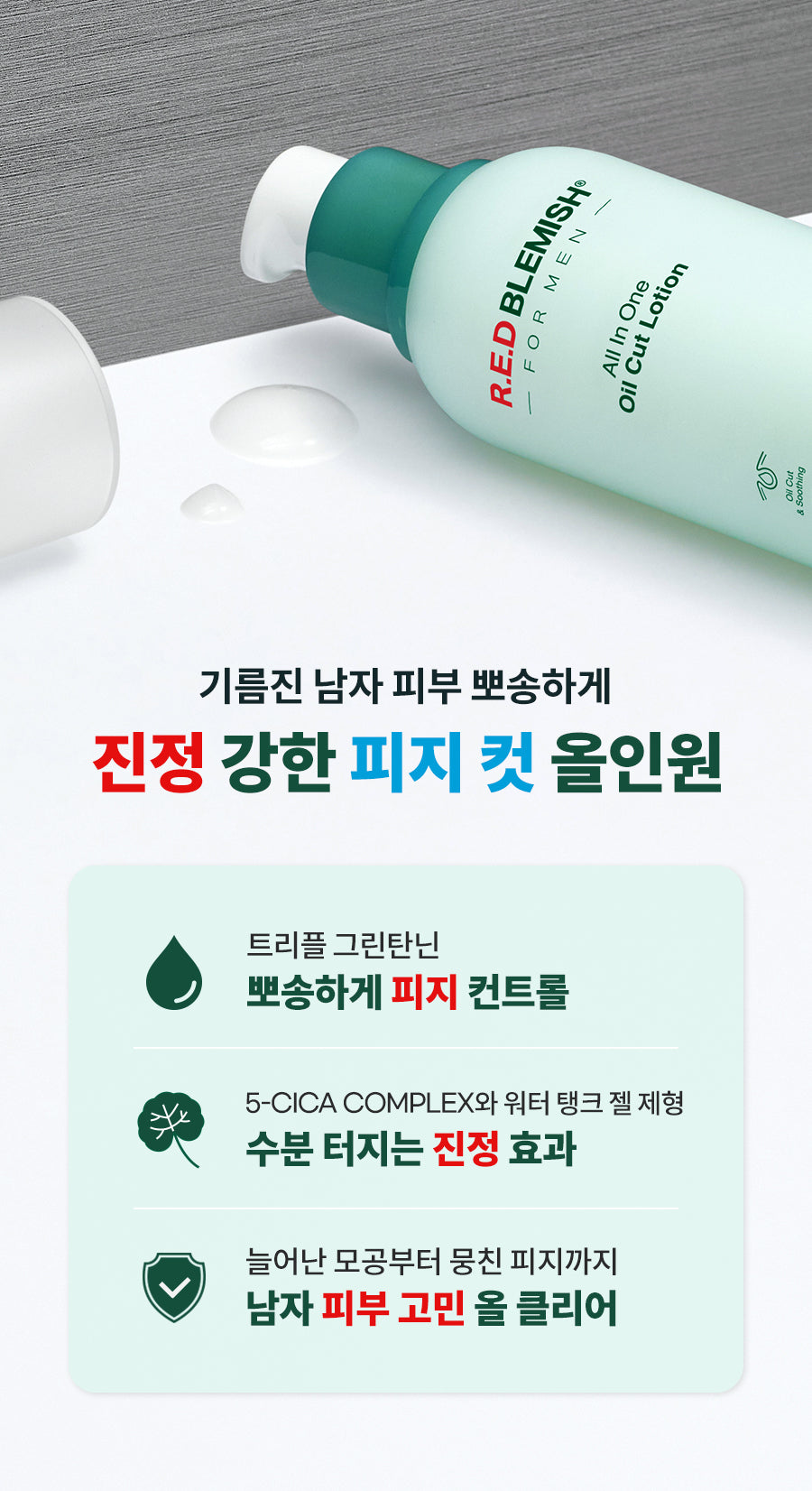 Red Blemish All-in-One Oil Cut Lotion is a versatile and effective solution for men dealing with oily skin, enlarged pores, and related concerns. Its unique combination of triple green tannin, 5-CICA complex, and a water tank gel formulation provides a comprehensive approach to managing sebum, ensuring skin remains hydrated, soothed, and healthy-looking.