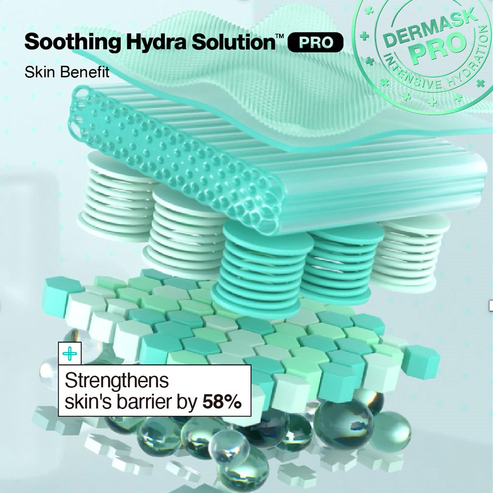 Introducing the Dr.Jart+ Dermask Soothing Hydra Solution™ Pro, a revolutionary mask that utilizes cutting-edge Liposome Beta Glucan Technology for instant calming effects. This advanced technology finely encapsulates beta-glucan in micro-particles, enhancing its ability to soothe the skin swiftly.