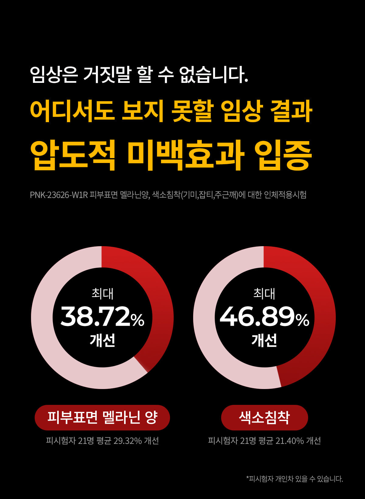 - Pigmentation and discoloration improvement by up to 46.89%.