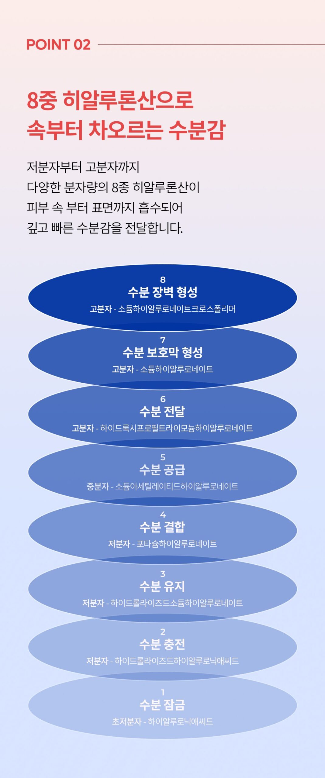 - 8 Types of Hyaluronic Acid: Offers comprehensive hydration benefits, including moisture locking, retention, recharge, and delivery, while forming a protective barrier.