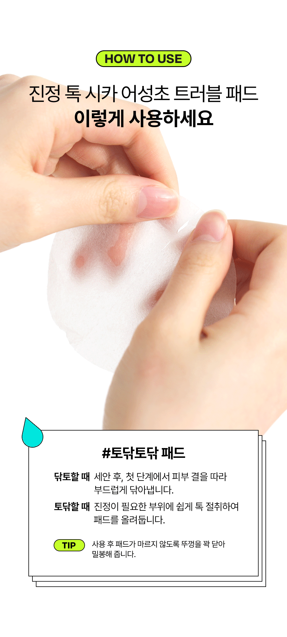 - For Emergency Soothing: Tear the pad and place it on areas that need quick soothing.