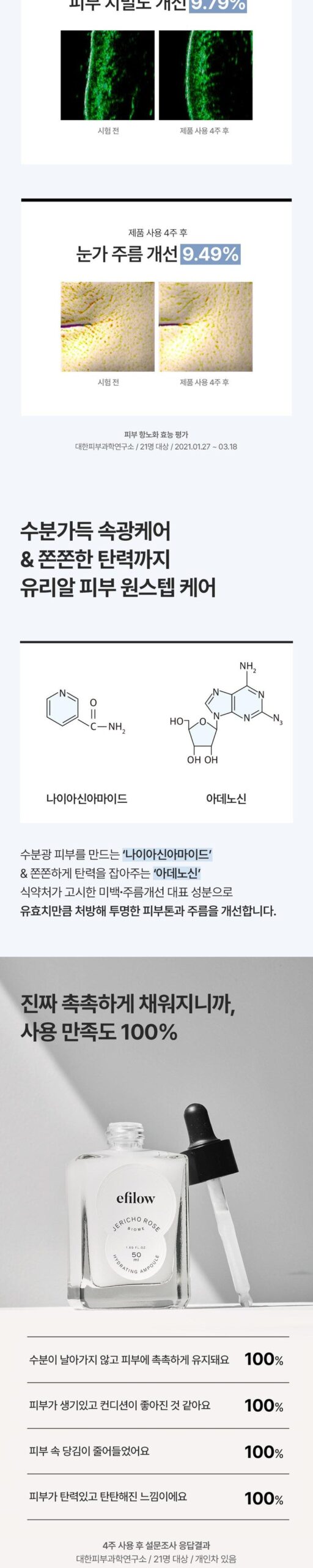 It is a representative whitening and wrinkle improvement ingredient notified by the Ministry of Food and Drug Safety and is prescribed at an effective level to improve clear skin tone and wrinkles.