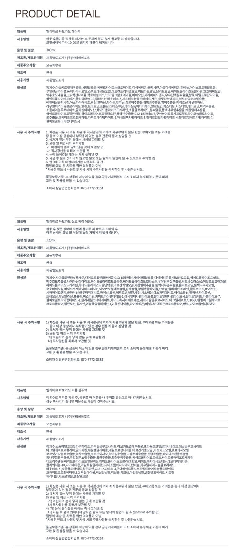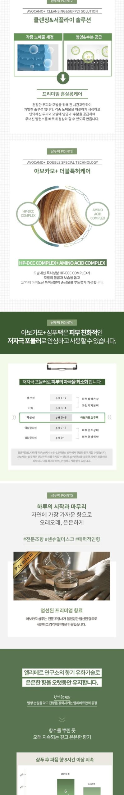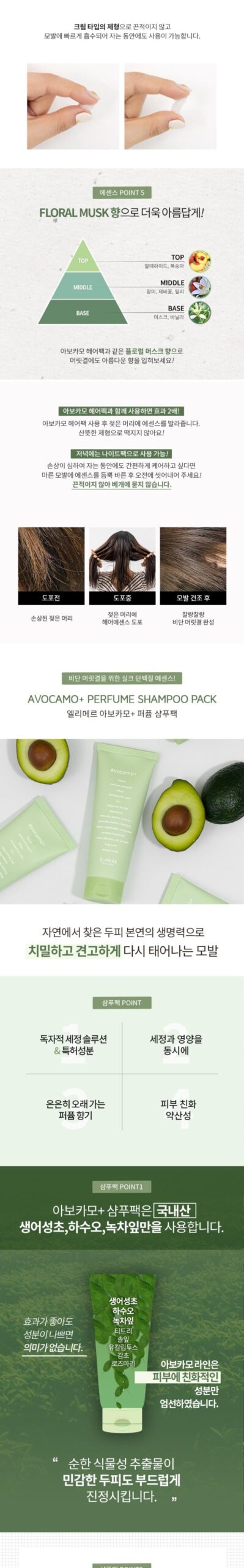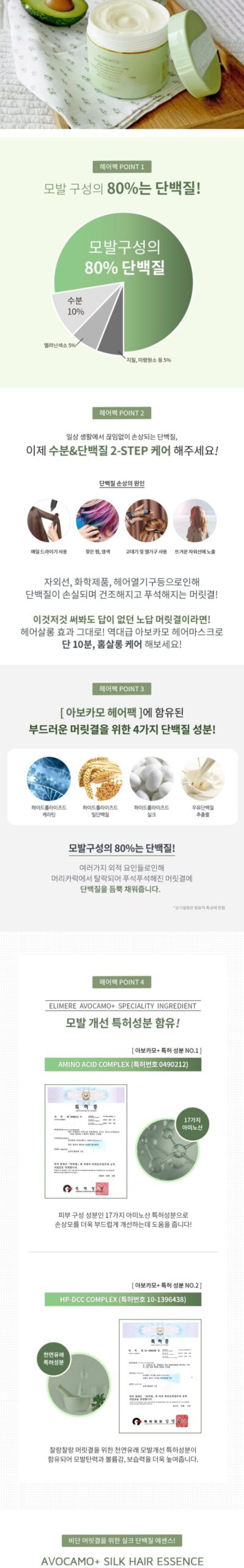 Our products are crafted in Korea, focusing on safety and efficacy. The Avocamo line includes avocado fruit extract, oils like argan and jojoba, and innovative components like amino acid complexes for comprehensive hair health.