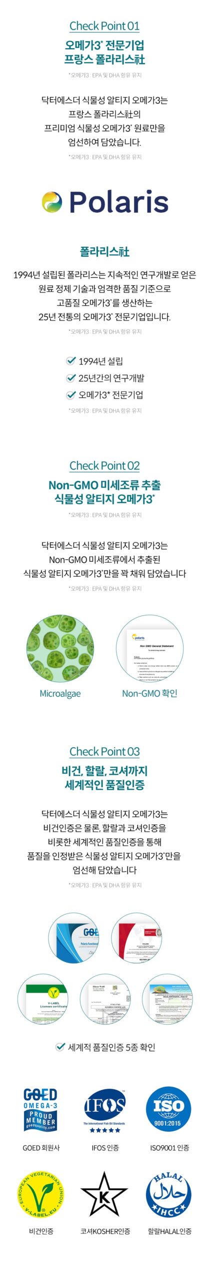 – **Special Process**: Aseptic-cultured microalgae extraction using Polaris’ world-patented process