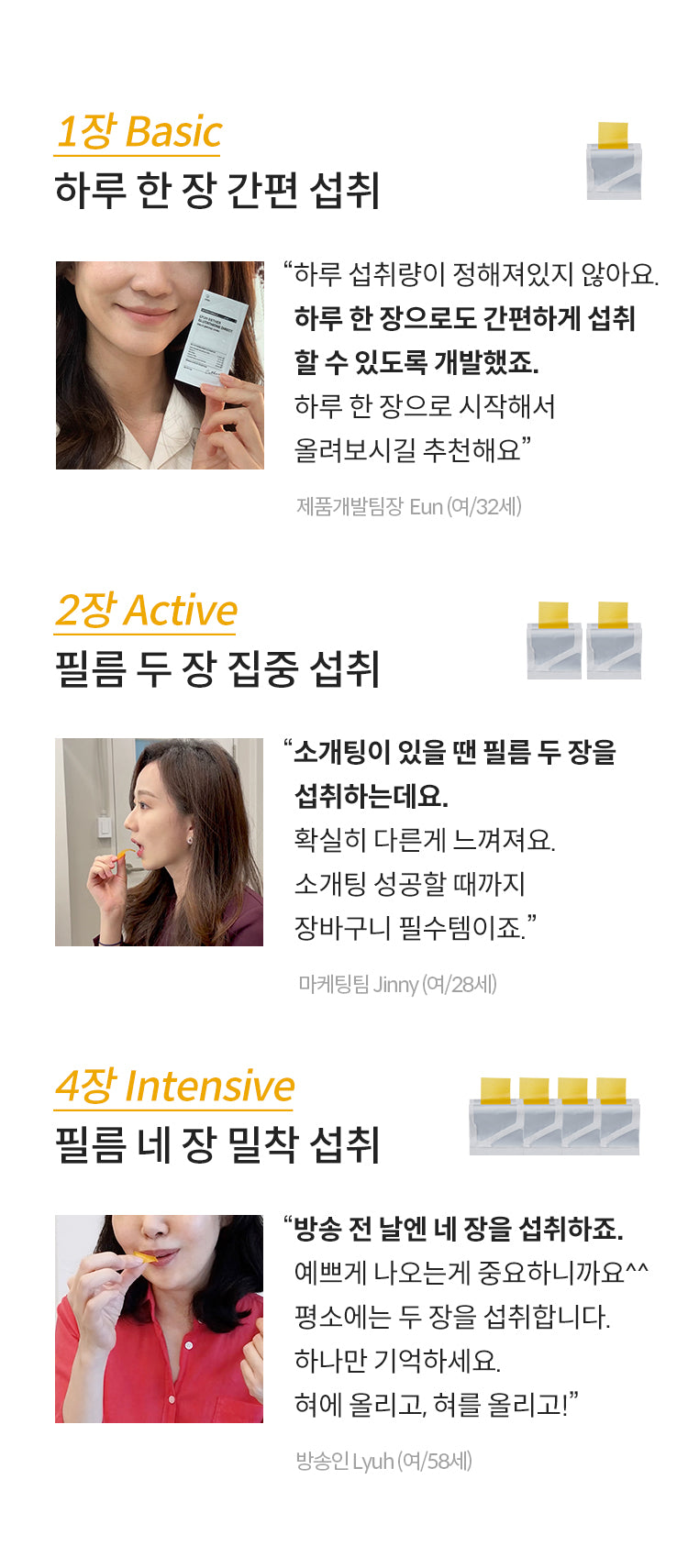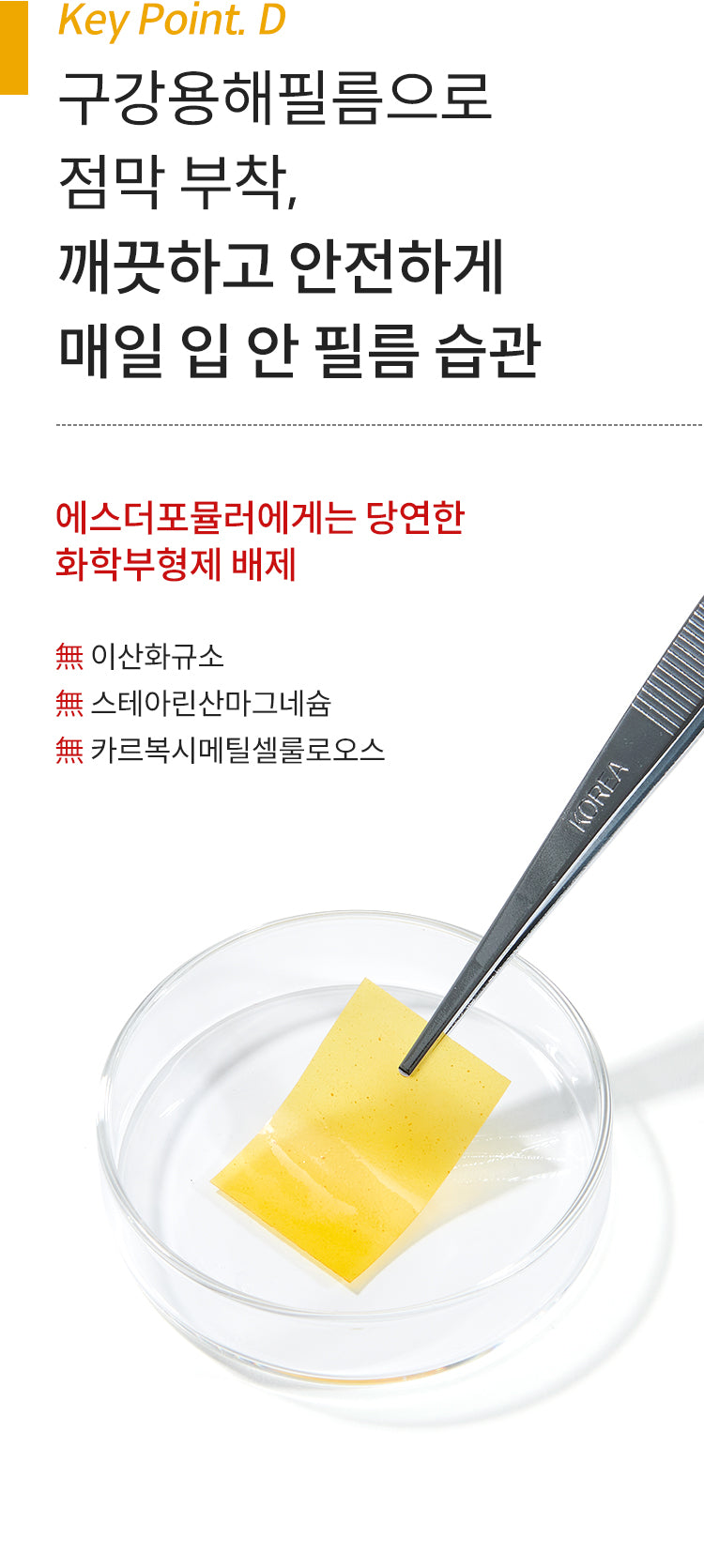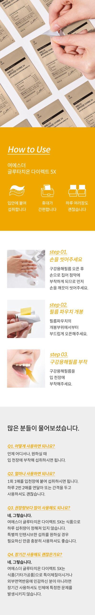 - Convenience: The film can be easily attached to the roof of the mouth, anywhere and anytime, without needing water or food.